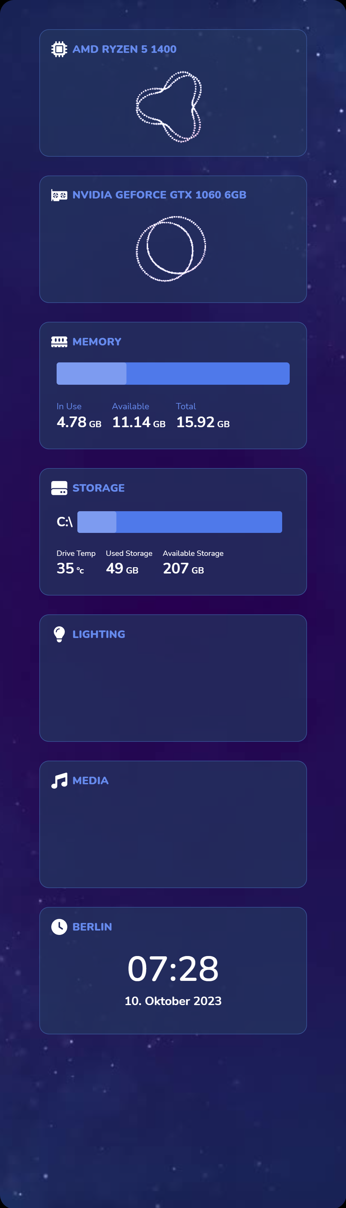 Dieses zeigt z.B. Systeminformationen und -auslastungen, einen Taschenrechner, der Twitch-Chat des Livestreams, OBS-Informationen sowie Bilder an und sogar Spiele können auf dem Bildschirm gespielt werden. Weitere Widgets sind für „Faces“ zudem in Entwicklung. Für noch mehr Personalisierung kann der Bildschirmhintergrund geändert oder sogar animiert werden. Auch hierfür gibt es zahlreiche verwendbare Vorlagen. Insgesamt sind die Konfigurationsmöglichkeiten innerhalb von NEXUS sehr umfangreich, machen die Oberfläche stellenweise aber etwas unübersichtlich. Die initiale Einrichtung ist dennoch sehr einfach und verständlich aufgebaut. Ein Konto ist nicht zwingend notwendig, erweitert aber die Möglichkeiten.
