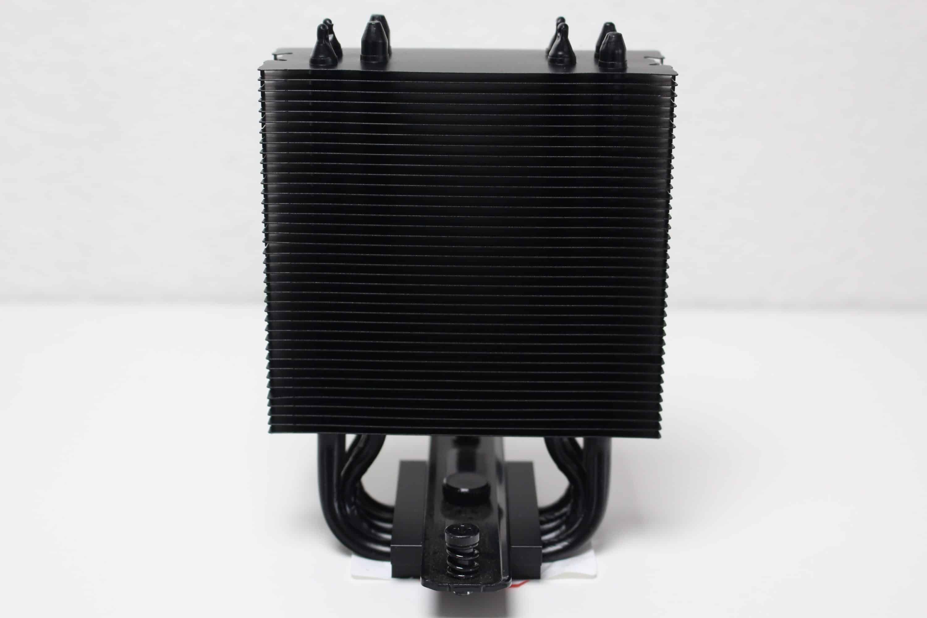 Optisch gibt es auf den ersten Blick nur sehr geringe Unterschiede zwischen dem 4P90 Bulk und dem 4P90 Pro Bulk. Auf den zweiten Blick kann man jedoch erkennen, dass der Kühlkörper aus 38 anstatt 36 schwarz lackierten Aluminiumlamellen besteht. Gleich bleiben die vier Heatpipes mit einem Durchmesser von sechs Millimetern sowie der Einsatz der Heatpipe-Direct-Touch-Technologie. Dafür ist der Kühlkörper aber leicht nach hinten versetzt. Eine Abdeckkappe für die Oberseite oder eine ARGB-Beleuchtung gibt auch bei der „Pro“-Version nicht.