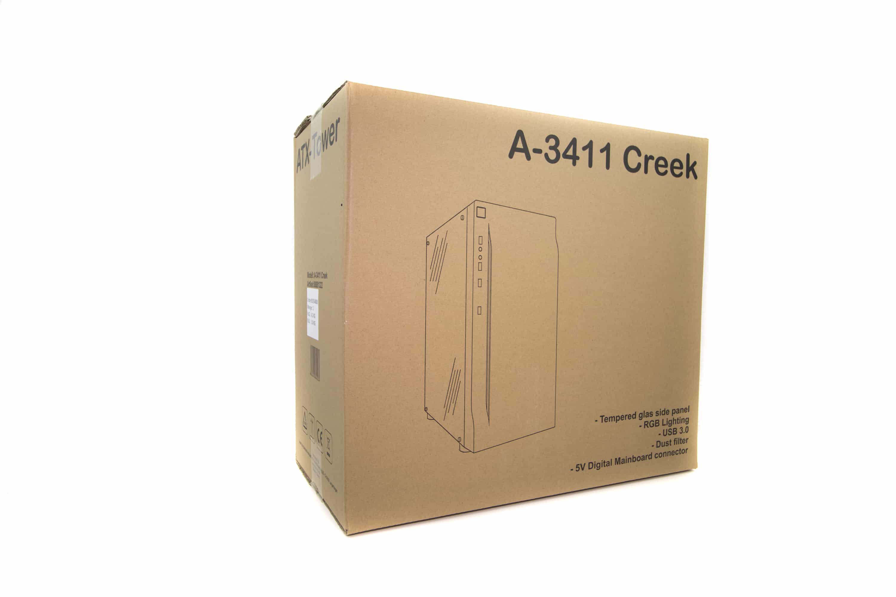 Geliefert wird das Inter-Tech A-3411 Creek in einem schlichten, braunen Karton. Dieser ist lediglich in Schwarz bedruckt. Hier hat Inter-Tech also schon Geld gespart, und das ist auch gut so. Denn wer braucht schon eine Gehäuseverpackung im Hochglanzdesign?