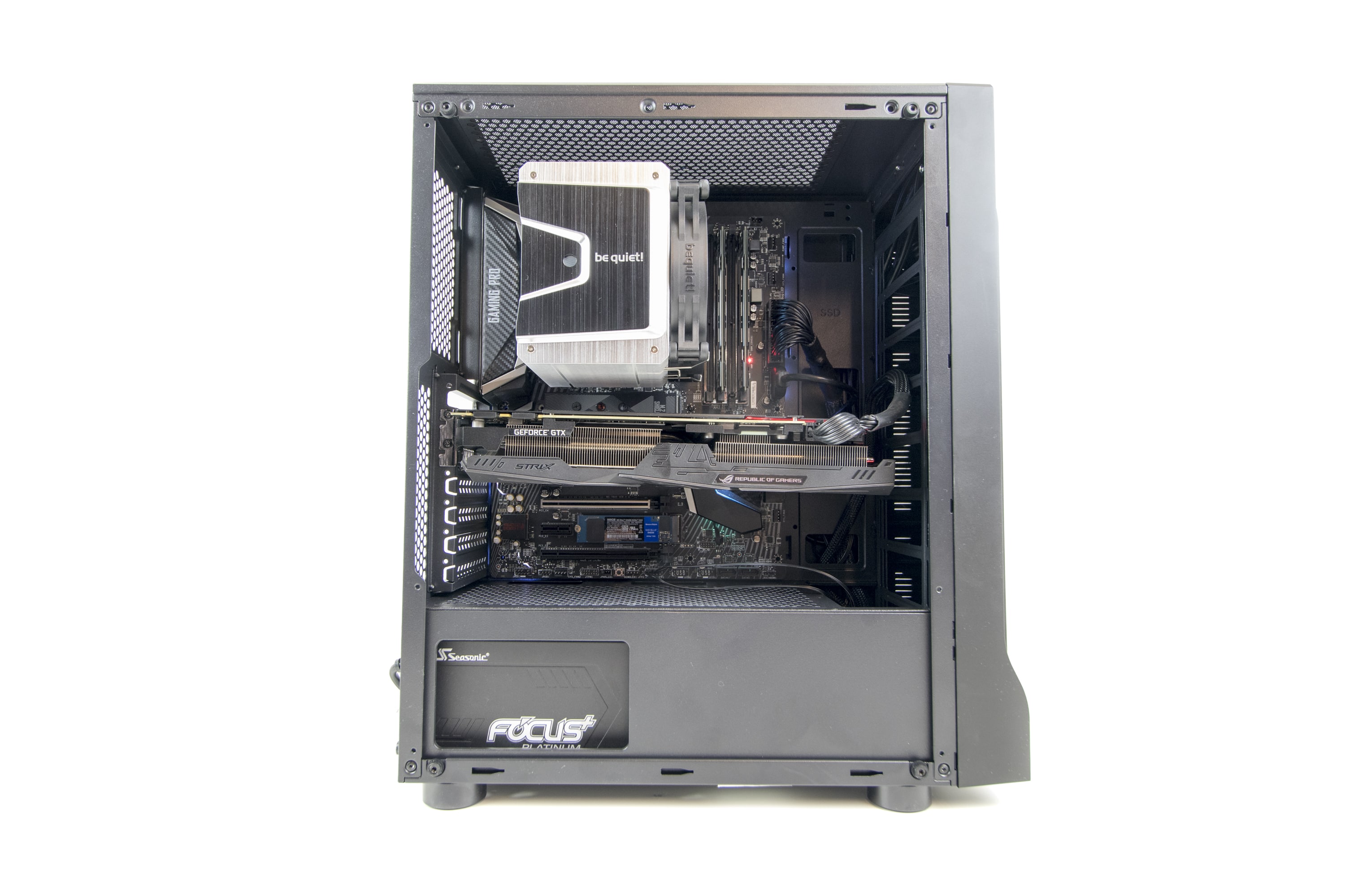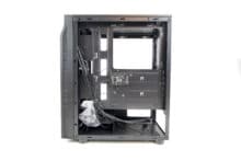 Der Einbau der Komponenten war schnell und einfach erledigt. Hilfreich waren vor allem die gut positionierten und dimensionierten Kabelmanagement-Öffnungen sowie der 20 Millimeter tiefe Stauraum hinterm Mainboard-Tray. So können Kabel ordentlich verlegt werden und es entsteht eine aufgeräumte Optik. Falls man einen großen Luftkühler verwendet, wie wir es getan haben, sollte jedoch darauf geachtet werden das CPU-Stromkabel vor dem Einbau des Mainboards anzuschließen, da es sonst nur schwer möglich ist dieses nachträglich anzubringen. Der Deckel lässt sich nämlich nicht entfernen (ohne die Nieten aufzubohren).