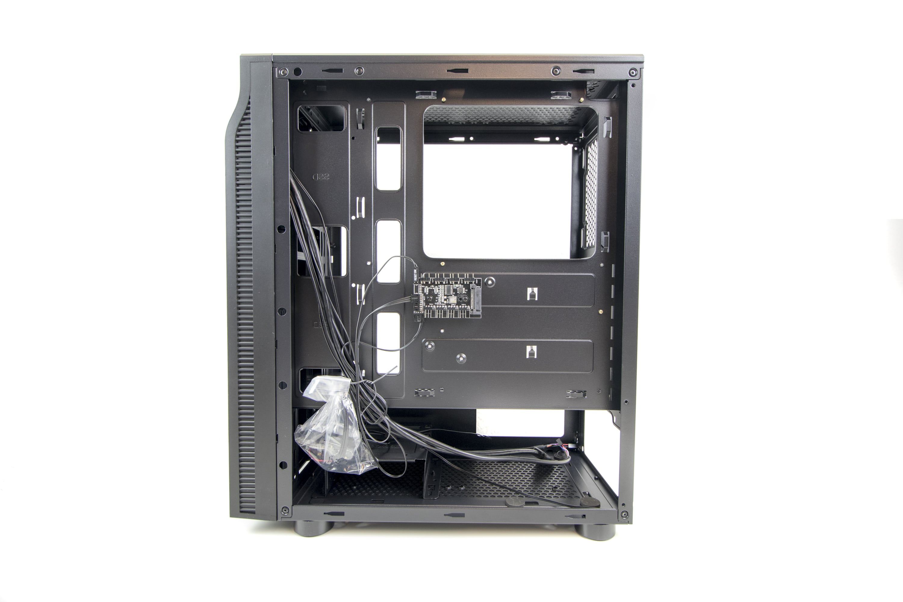 Obwohl das Gewicht mit 4,32 kg inklusive Hartglas-Scheibe sehr niedrig ist, ist das Gehäuse sauber verarbeitet und formstabil. Bei dem Preis könnte man ein wackliges Gehäuse aus dünnem Stahlblech erwarten, dies ist jedoch nicht der Fall. Von außen macht das Inter-Tech A-3411 Creek also schon einen sehr guten Eindruck, trotz des geringen Preises.