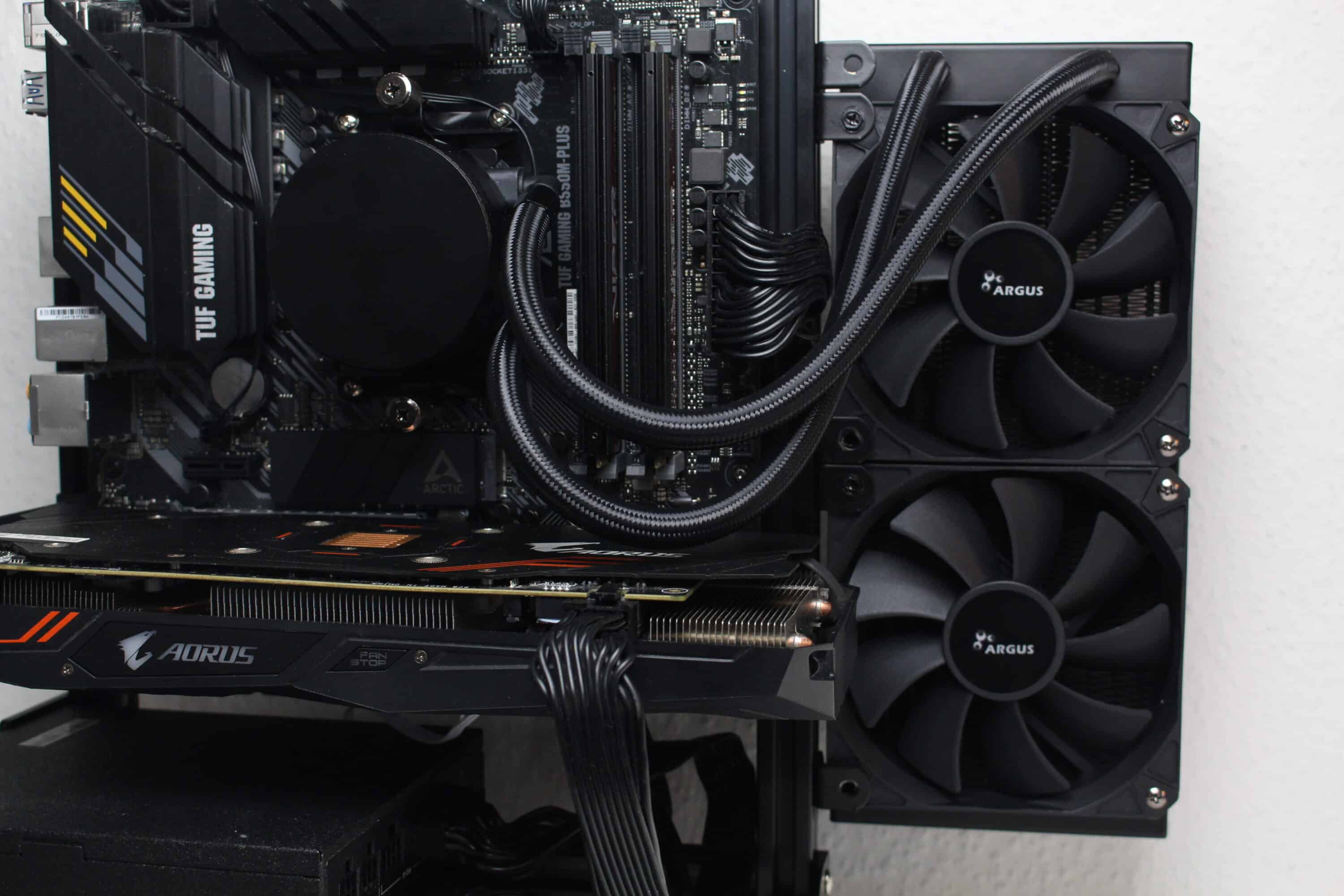 Für das Review kommt ein Testsystem zum Einsatz, welches auf einem Benchtable montiert ist. Dadurch können wir Faktoren wie einen Hitzestau im Gehäuse ausschließen. Das Testsystem besteht aus den folgenden Komponenten.