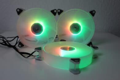 Verbindet man die Lüfter mit dem Mainboard, so erhält man die Konfigurationsmöglichkeiten, die der Mainboardhersteller anbietet. In unserem Testszenario ist dies MSI mit dem hauseigenen Mystic-Light – hier erhält man neben statischen Farben auch Regenbögeneffekte, Pulsieren, Aufblitzen u.v.m. Außerdem hat man so die Möglichkeit, das Lüfterset mit RGB-Produkten anderer Marken zu synchronisieren.