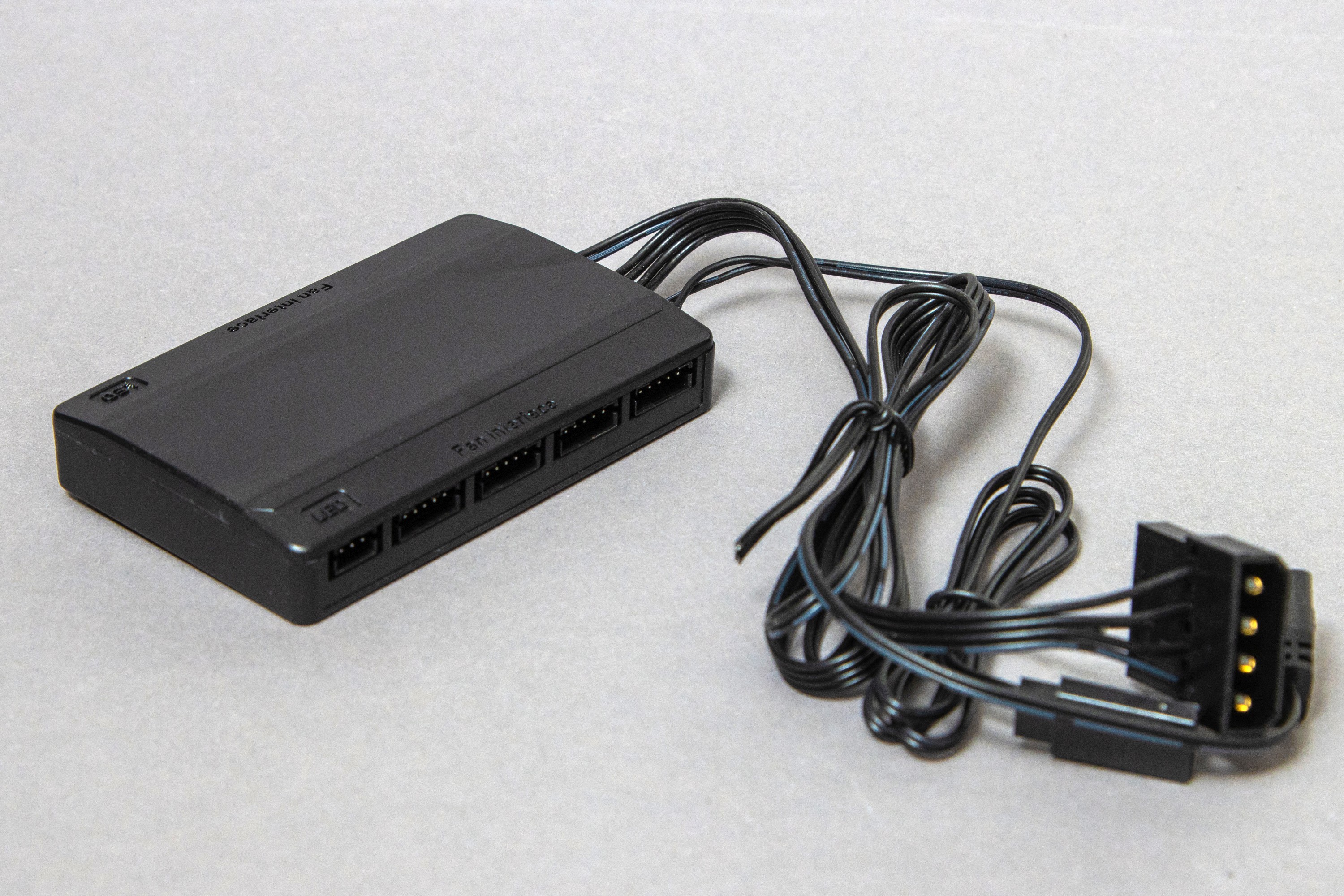Die Inter-Tech Argus RS-14 werden generell via PWM angesteuert. Für die RGB-Steuerung ist man auf einen Argus-Controller angewiesen, der hier mitgeliefert wird. Dieser kann bis zu 8 Lüfter steuern, sodass man auch Einzellüfter ergänzen kann. Eingestellt werden können die Programme auf unterschiedliche Weisen. Die einfachste Möglichkeit ist die Kontrolle via Fernbedienung. Hier kann man diverse Modi direkt wählen und dann die Helligkeit und die Geschwindigkeit anpassen. Alternativ kann man an den Controller den Stecker vom Reset-Schalter des Gehäuses anschließen, was eine Ansteuerung wie bei vielen modernen RGB-Gehäusen ermöglicht, zumal der Reset-Schalter in den letzten Jahren immer mehr an Bedeutung verliert. Zuletzt kann man den Controller auch mit einem ARGB-Anschluss vom Mainboard aus steuern.