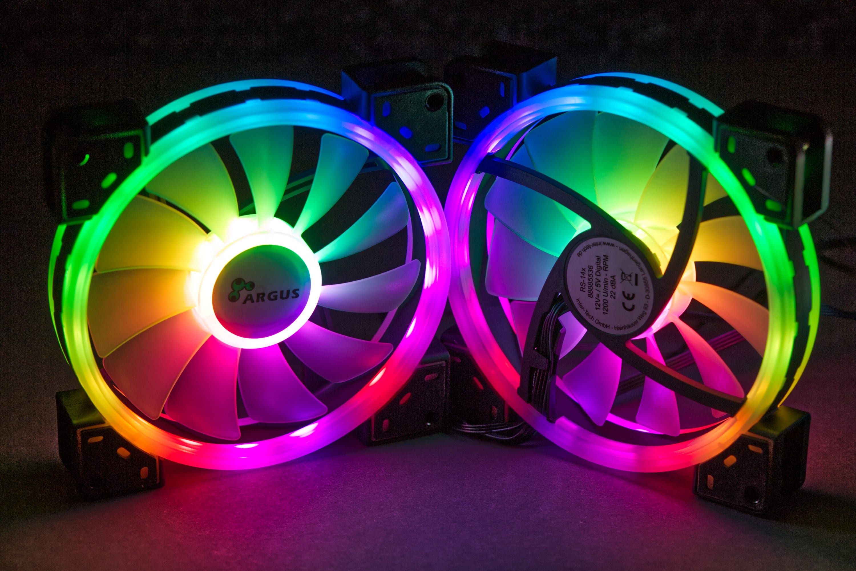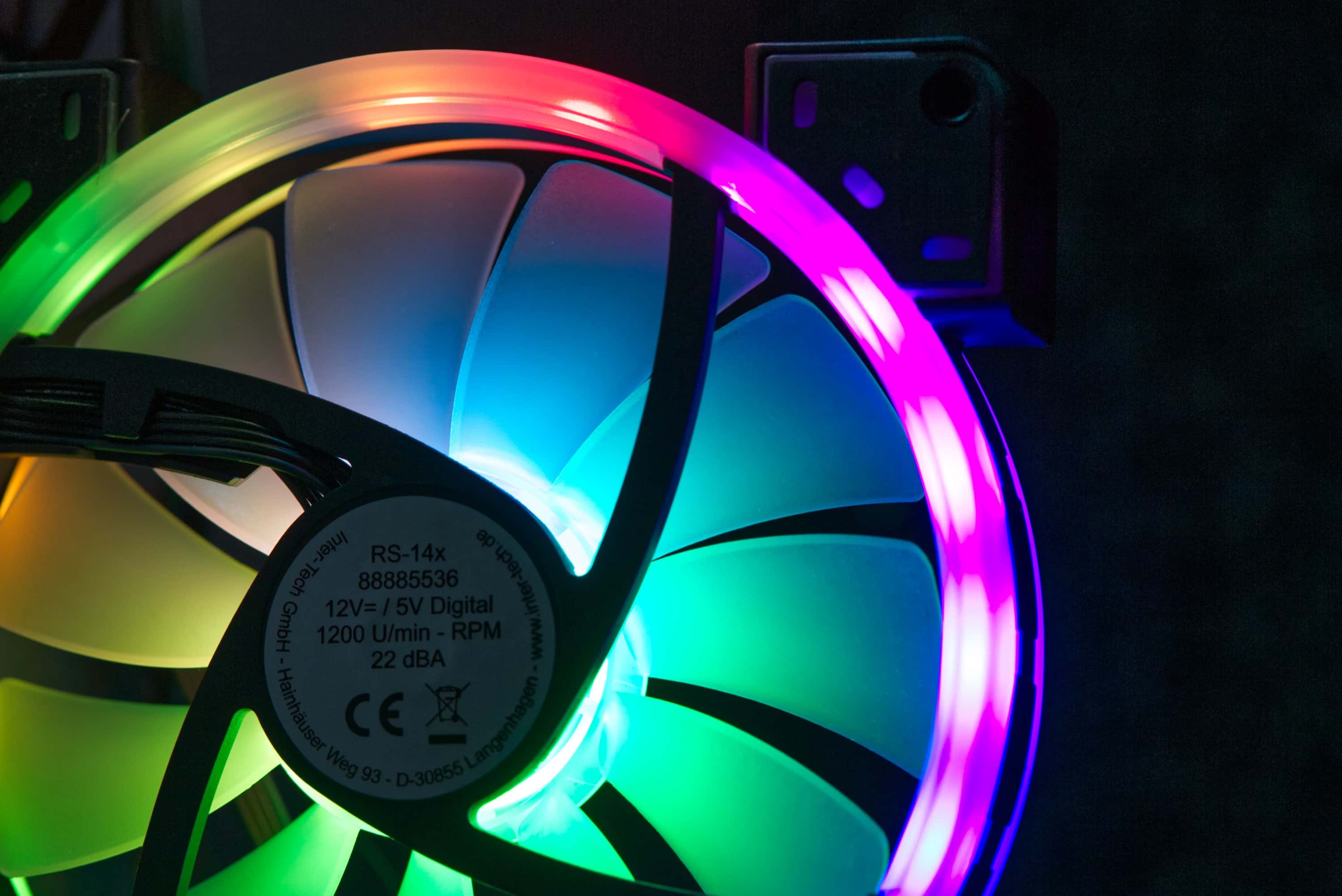 Die Inter-Tech Argus RS-14 sind gu00fcnstige 140-mm-Lu00fcfter mit einer kru00e4ftigen RGB-Beleuchtung und wo die reine Ku00fchlleistung mittelmu00e4u00dfig ist, bleiben diese Lu00fcfter ziemlich leise.