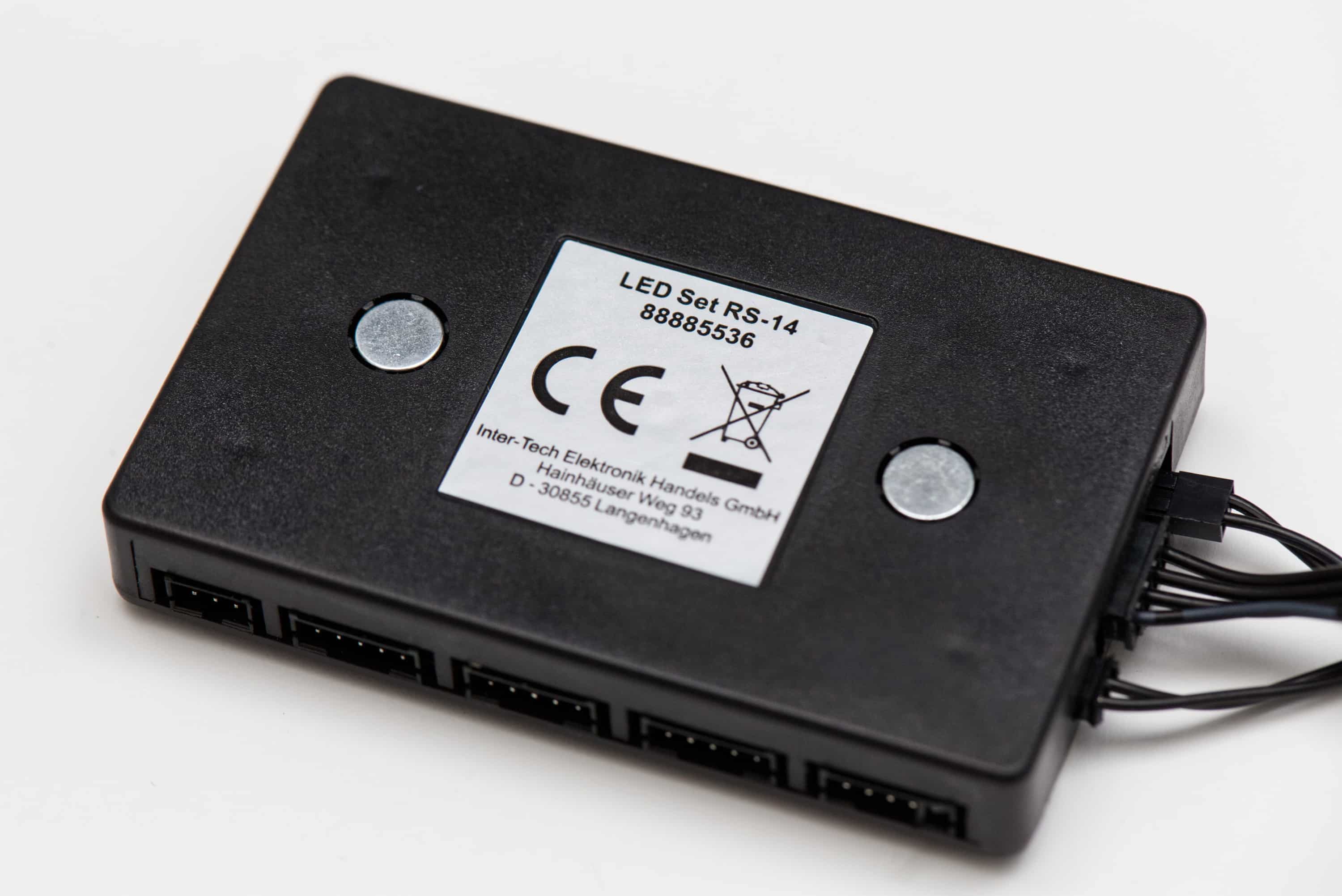 Zusammen mit den Inter-Tech Argus RS-14 wird ein passender RGB-Controller geliefert. Dazu gibt es die entsprechende Fernbedienung.