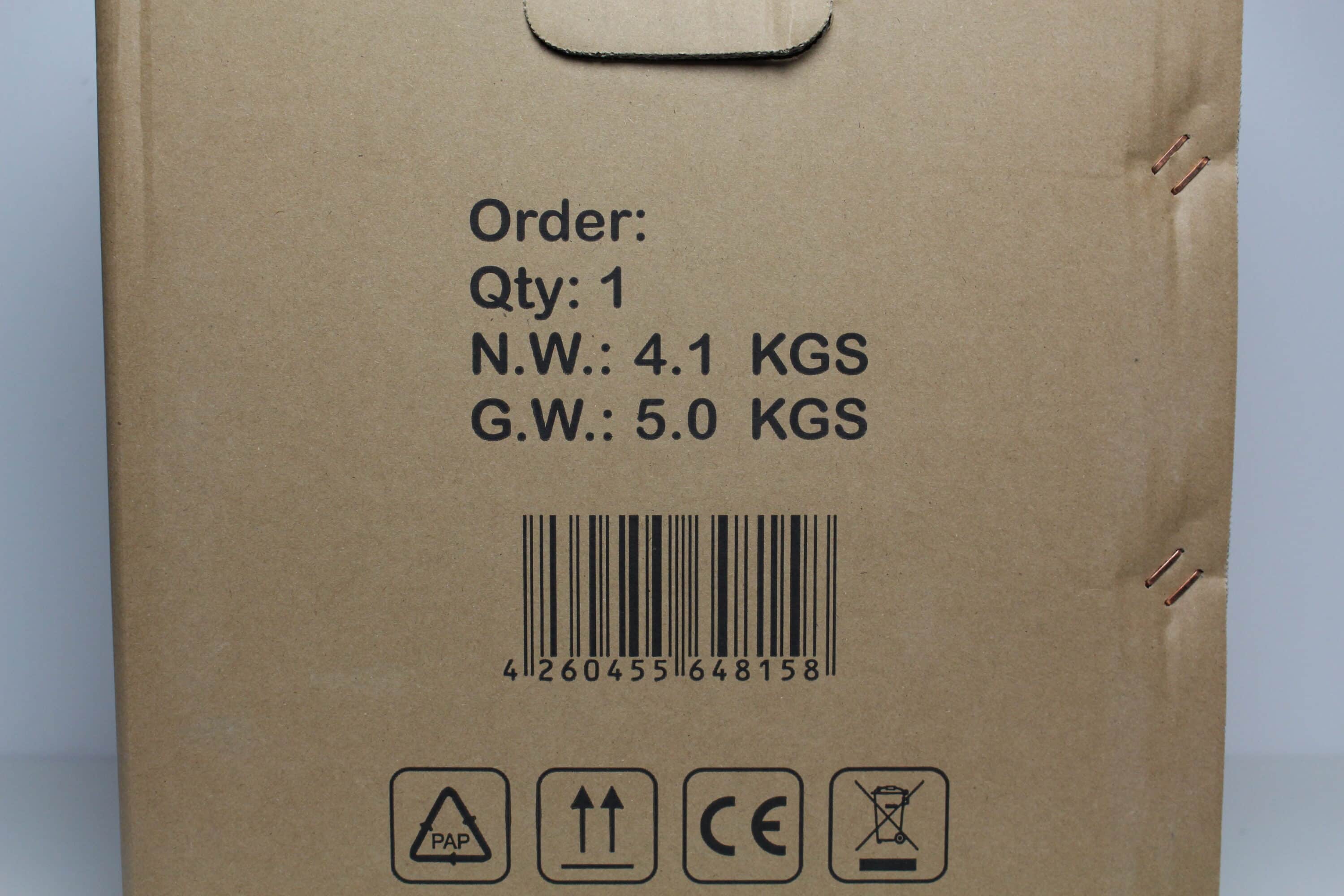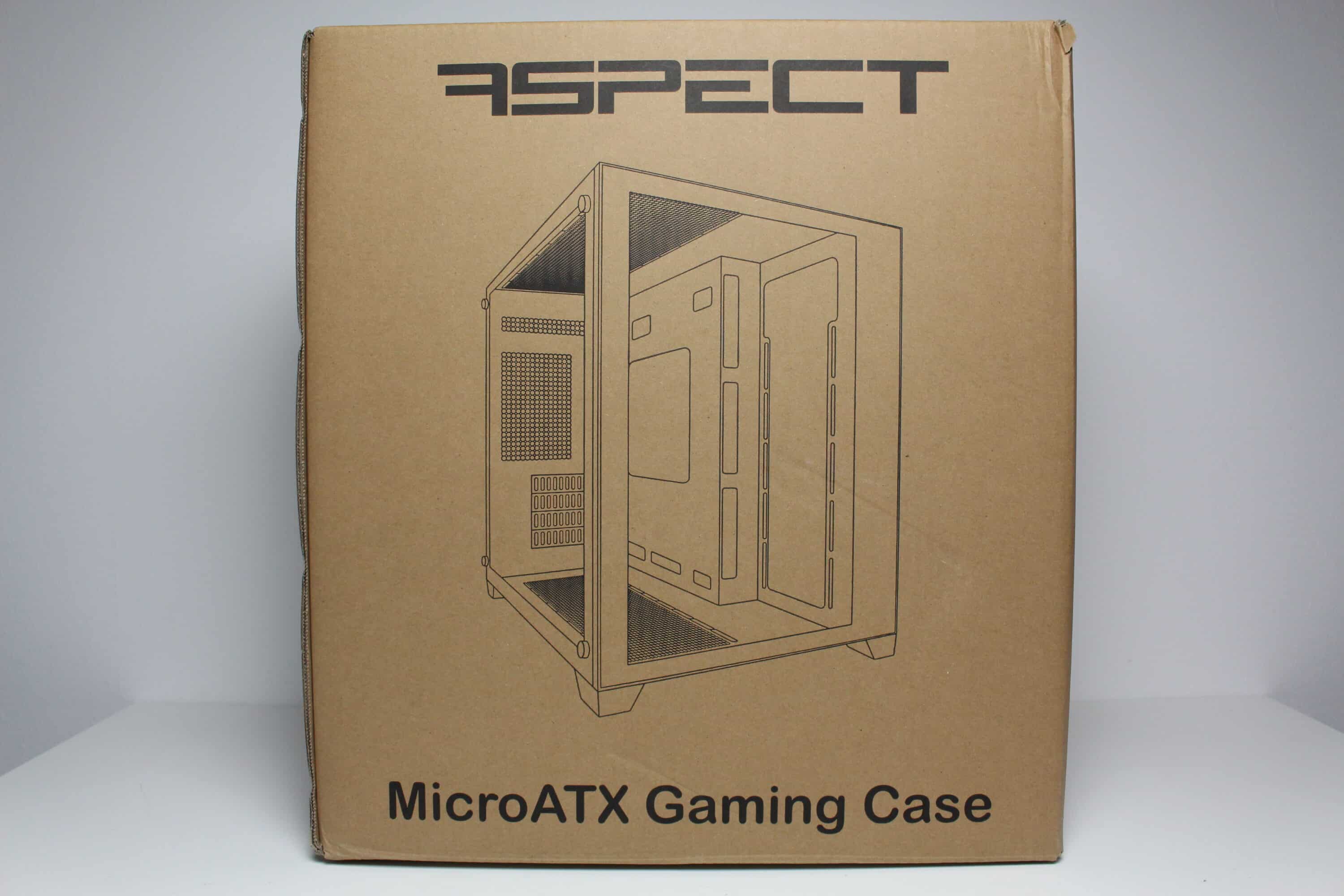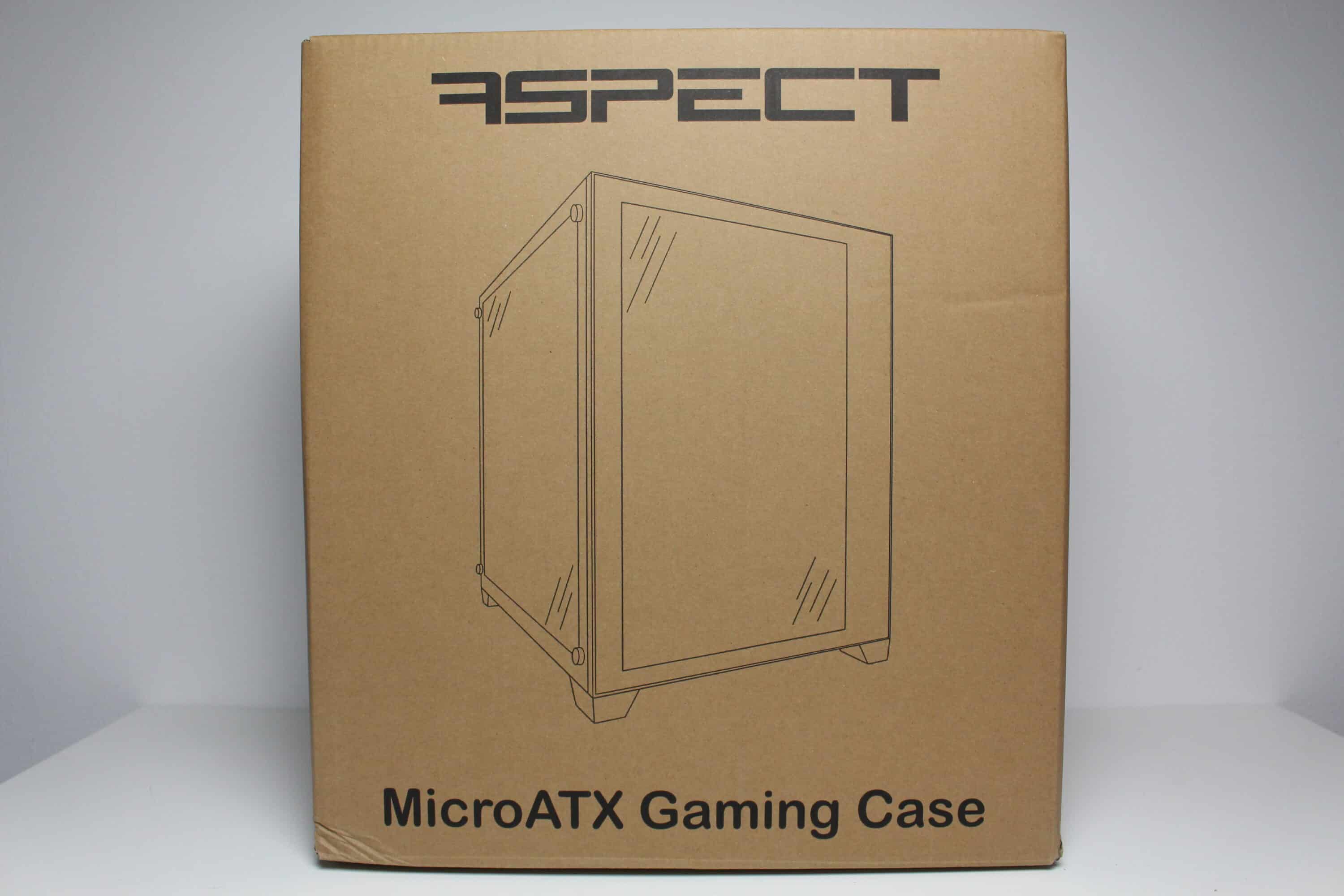 Typisch für Inter-Tech wird auch das C-501 Aspect in einer schlichten Kartonage aus brauner Pappe verpackt. Auf aufwendige Farben oder Bedruckungen wird zu Gunsten eines günstigeren Kaufpreises bewusst verzichtet. Worauf allerdings auch verzichtet wird, sind nahezu sämtliche Angaben zu den technischen Daten. Einzig zwei schematische Zeichnungen, einen Teil des Produktnamens und das Gewicht wurden auf den Karton gedruckt.