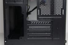 Da die Front aus Glas besteht, können hier logischerweise keine Lüfter befestigt werden. Stattdessen verfügt das C-501 Aspect über seitliche Montageschienen. Offiziell können hier nur zwei 120-mm-Lüfter platziert werden. Unter bestimmten Umständen könnte hier aber auch eine Radiator-Montage möglich sein. Dazu aber später mehr. An der Rückseite findet ein weiterer Lüfter Platz und es lassen sich vier Erweiterungslots erkennen, von denen drei leider nur über herausbrechbare Blenden verfügen.