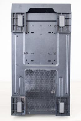 Die Unterseite des F-762 Silencer verbirgt keine besonderen Highlights. Der Midi-Tower steht auf soliden Füßen aus Kunststoff die zur Geräuschreduzierung mit Gummistreifen versehen wurden. Das unten verbaute Netzteil wird durch einen Mesh-Filter vor Staub geschützt.
