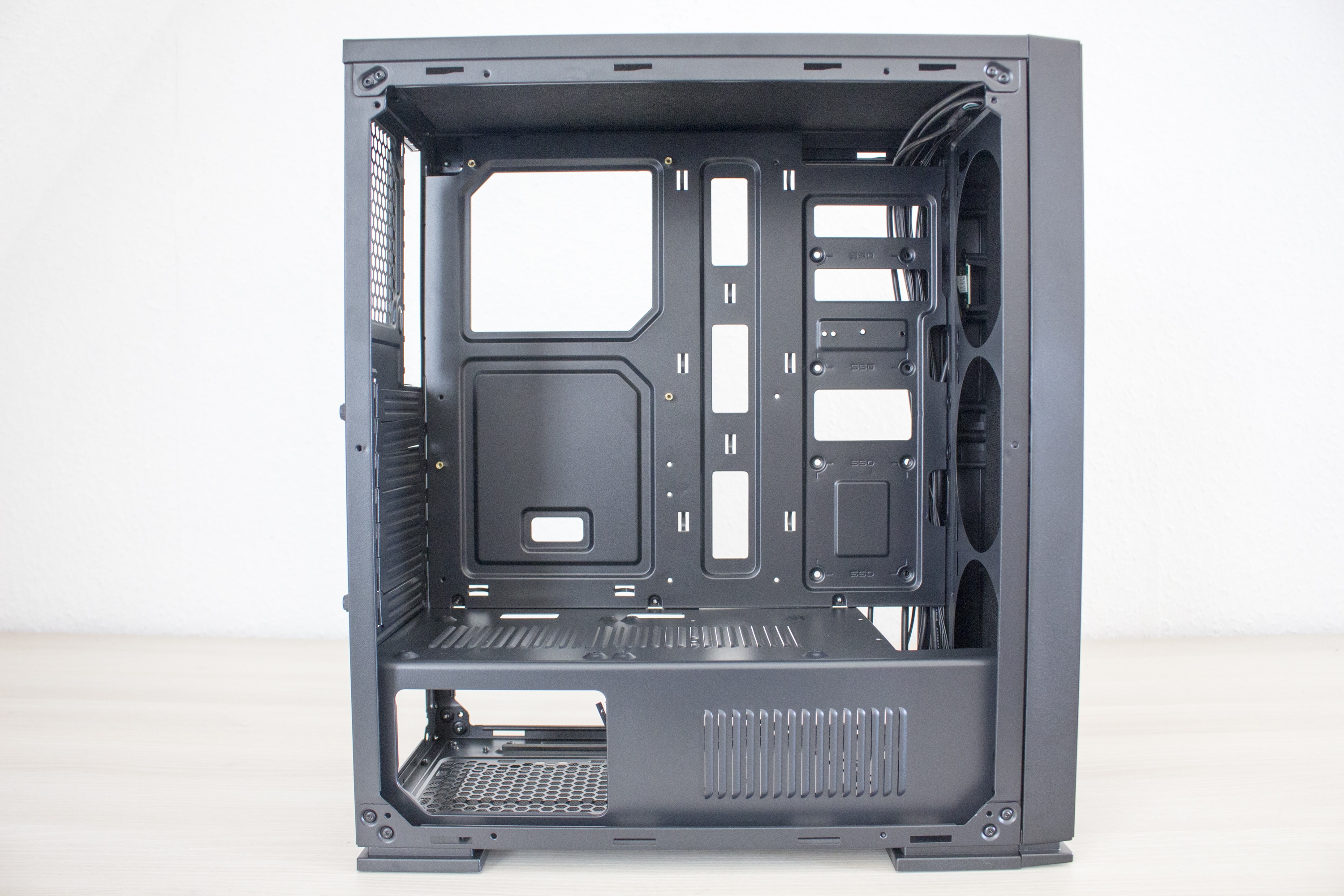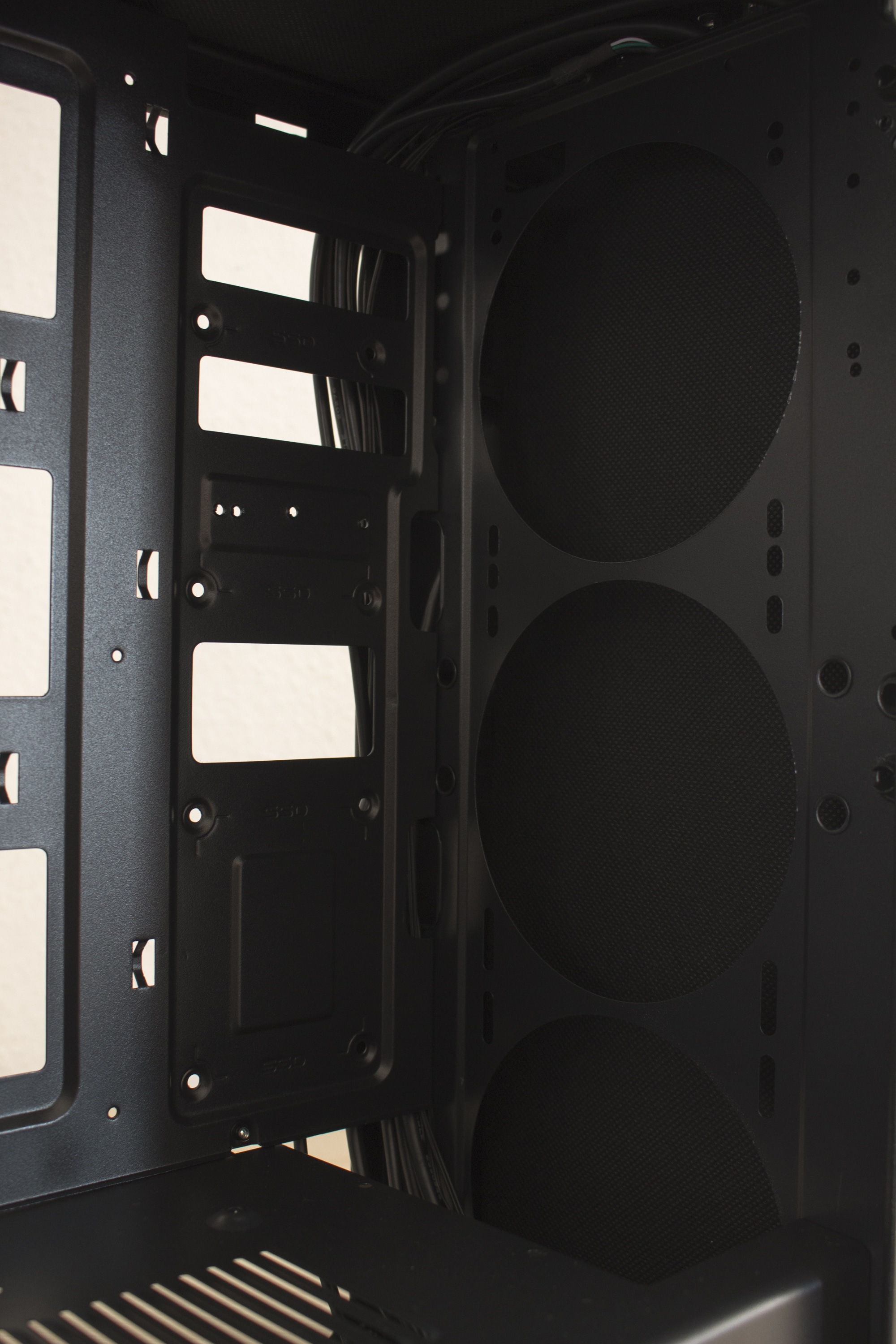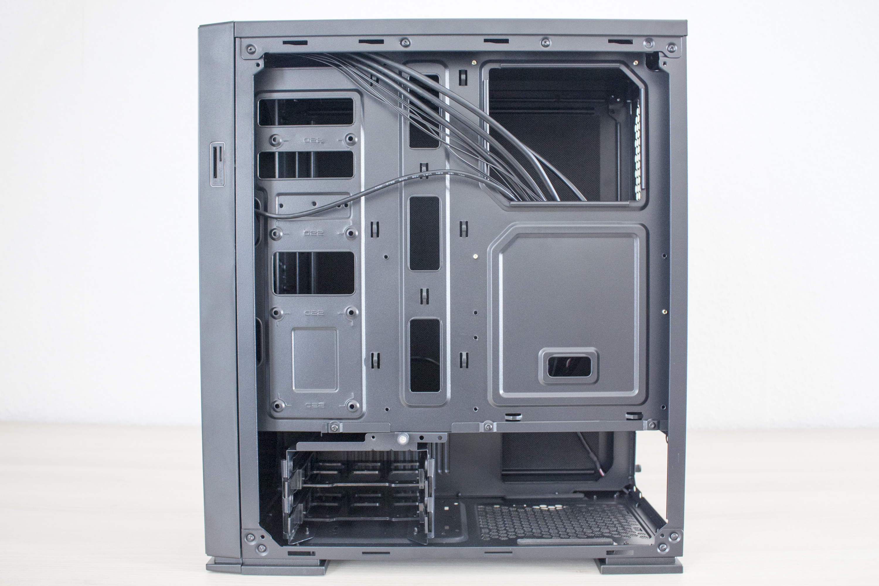 Beide Seitenteile sind komplett geschlossen und von innen mit Dämmmatten ausgekleidet. Durch diese wirken beide Sidepanels stabil und haben ein gutes Gewicht. Zur einfachen Demontage verfügen beide Seitenteile über praktische Abziehhilfen und Rändelschrauben.