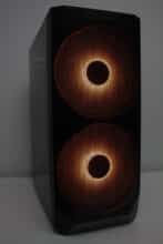 Die viel beworbenen 200-mm-Lüfter sind aber auch gleichzeitig ein Kritikpunkt bei diesem Midi-Tower. Denn der Korpus ist für den Betrieb solch großer Lüfter gar nicht ausgelegt und mindert somit die Effektivität. Kleinere Lüfter passen zwar in die Front, sehen aber aufgrund des speziell gestalteten Frontpanels optisch nicht mehr so ansprechend aus. Neben diesem großen Makel kommen weitere Kleinigkeiten wie zum Beispiel die fehlende Geschwindigkeitsregelung der Lüfter über die Platine sowie ein fehlender Staubfilter in der Front. Außerdem hätte die Materialstärke an der ein oder andere Stelle durchaus etwas höher sein können und auch nicht nicht wiederverwendbaren PCI-Slotblenden gehören nicht in diese Preisklasse.