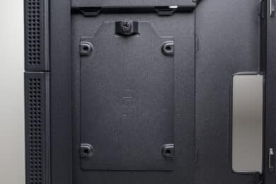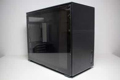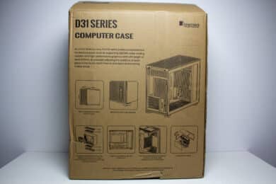 Das größte Manko ist beim Jonsbo D31 MESH Screen wohl die völlige Abwesenheit von Gehäuselüftern. Selbst unsere Einstiegs-CPU mit einer TDP von 65 Watt kommt beim Belastungstest an seine Grenzen. Ein einzelner Hecklüfter schafft bereits gute Abhilfe, weitere Lüfter sind aber grundsätzlich Pflicht um ein Gaming-PC im D31 vernünftig gekühlt zu bekommen. Das Nachsehen hat man beim D31 auch im Bereich Datenträgern. Lediglich zwei 2,5″-SDDs und eine 3,5″-Festplatte können montiert werden. Letztere auch nur, wenn man auf einen dritten Lüfter im Boden verzichtet.
