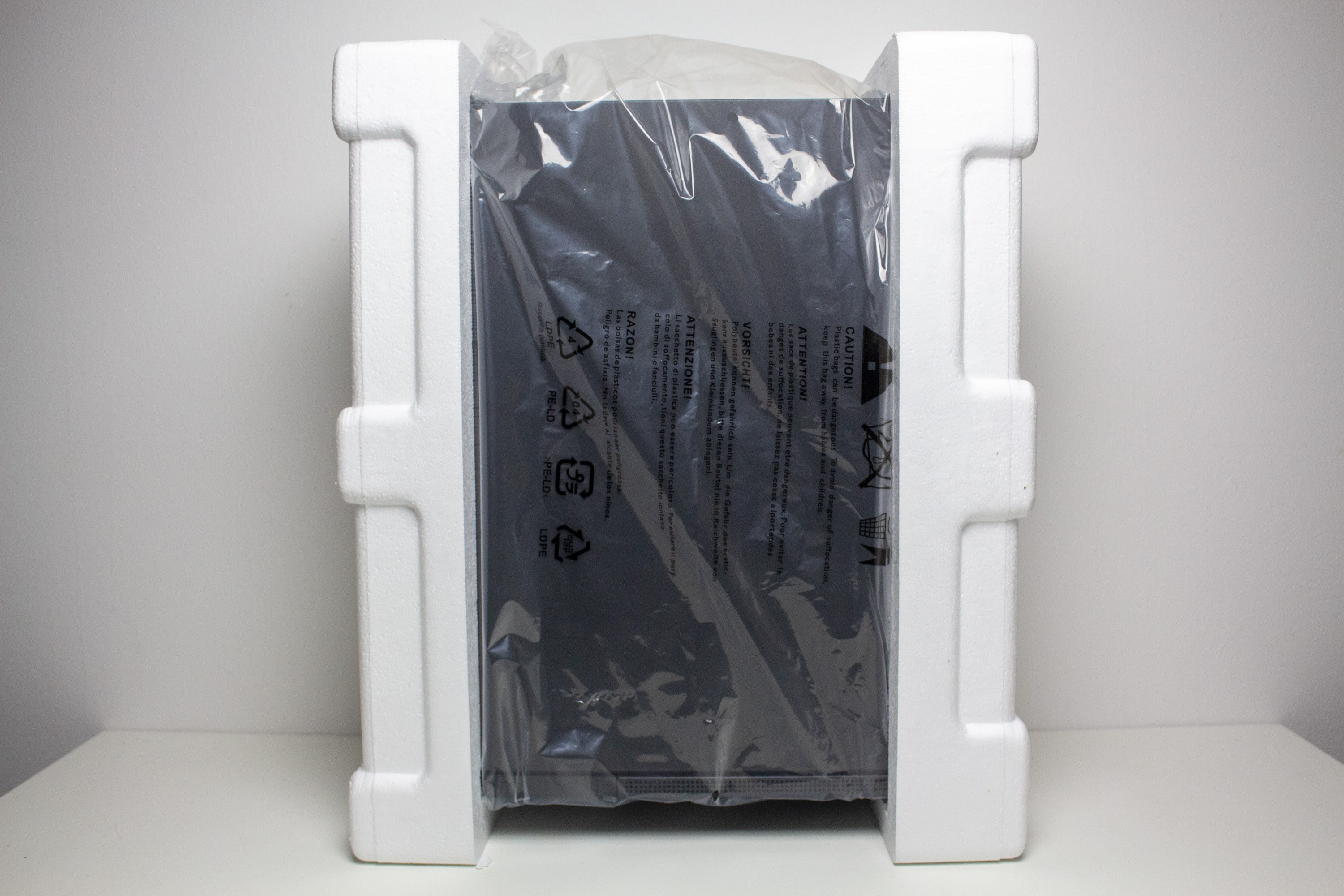 Das mitgelieferte Zubehör platziert Jonsbo zum einen in einem Beutel aus Kunststoff und zum anderen in einer braunen Schachtel. In der Schachtel finden wir das Mesh-Panel, alle Anschlusskabel für das Display, eine Einbauanleitung sowie zwei Standfüße zur freien Platzierung des Bildschirms auf dem Schreibtisch. Der Kunststoffbeutel beinhaltet alle notwendigen Montageschrauben, Stand-Offs und einige Kabelbinder. Weiterhin gehören zum Lieferumfang ein vorinstallierter Staubfilter für die Unterseite des Gehäuses.