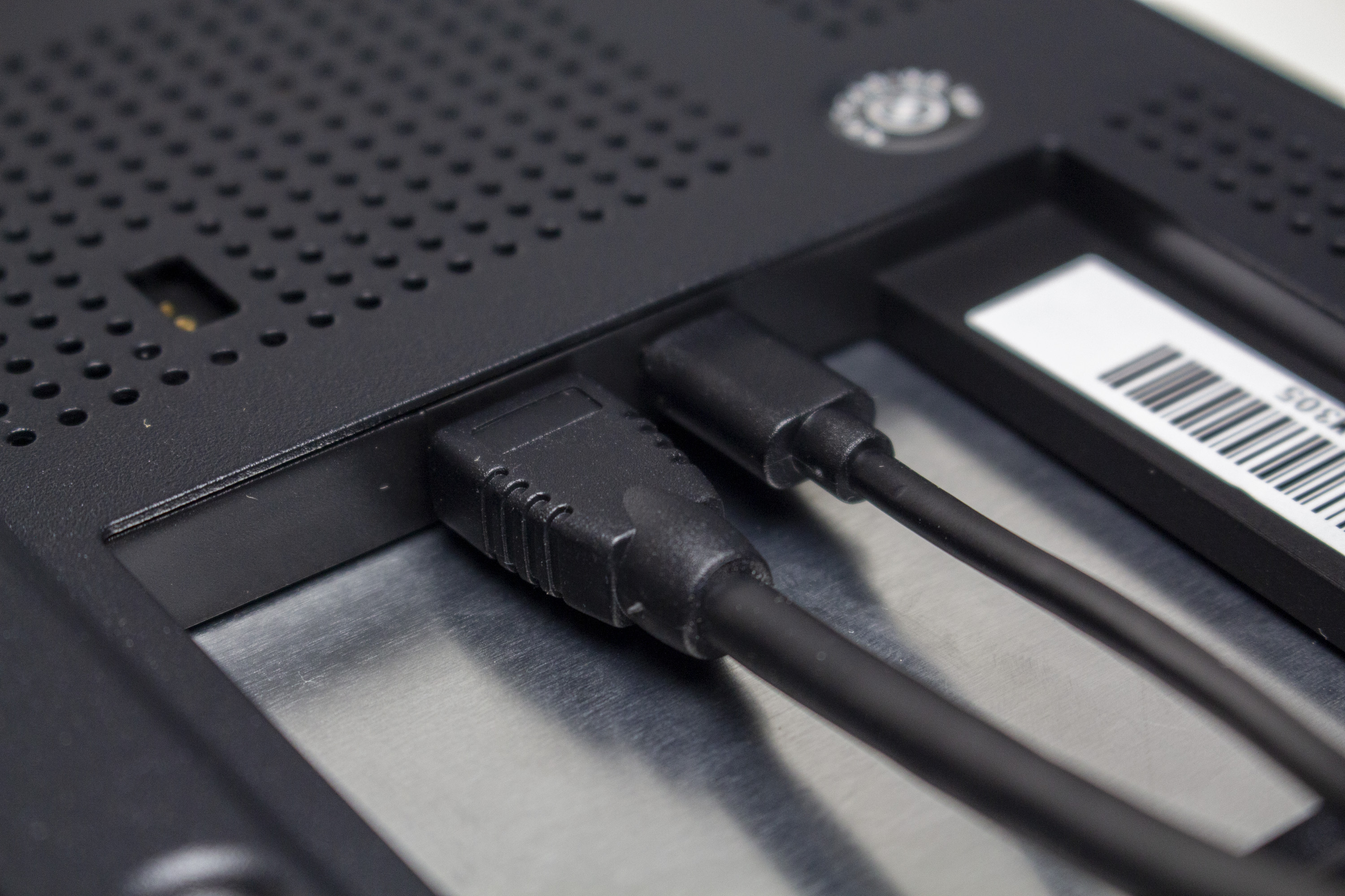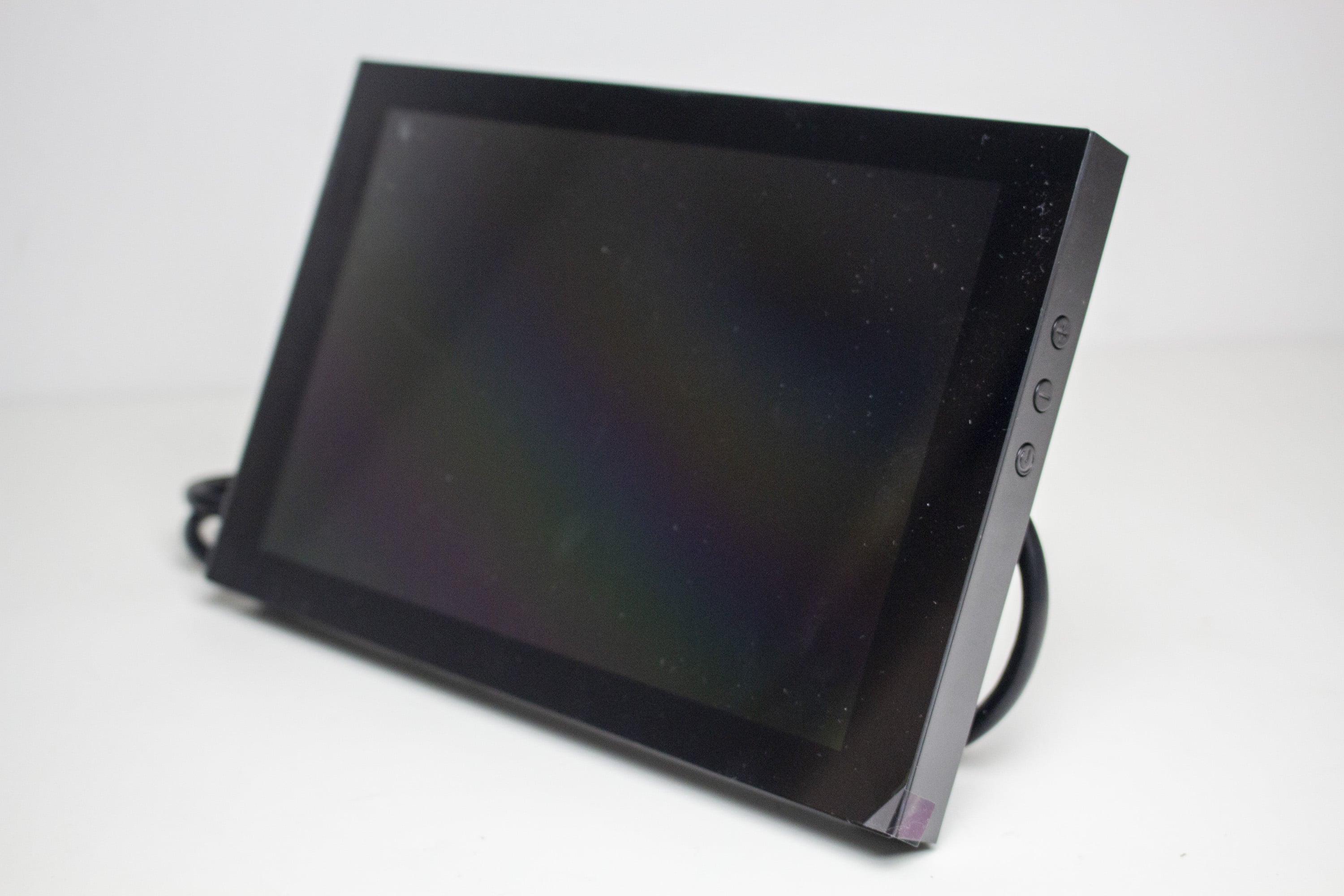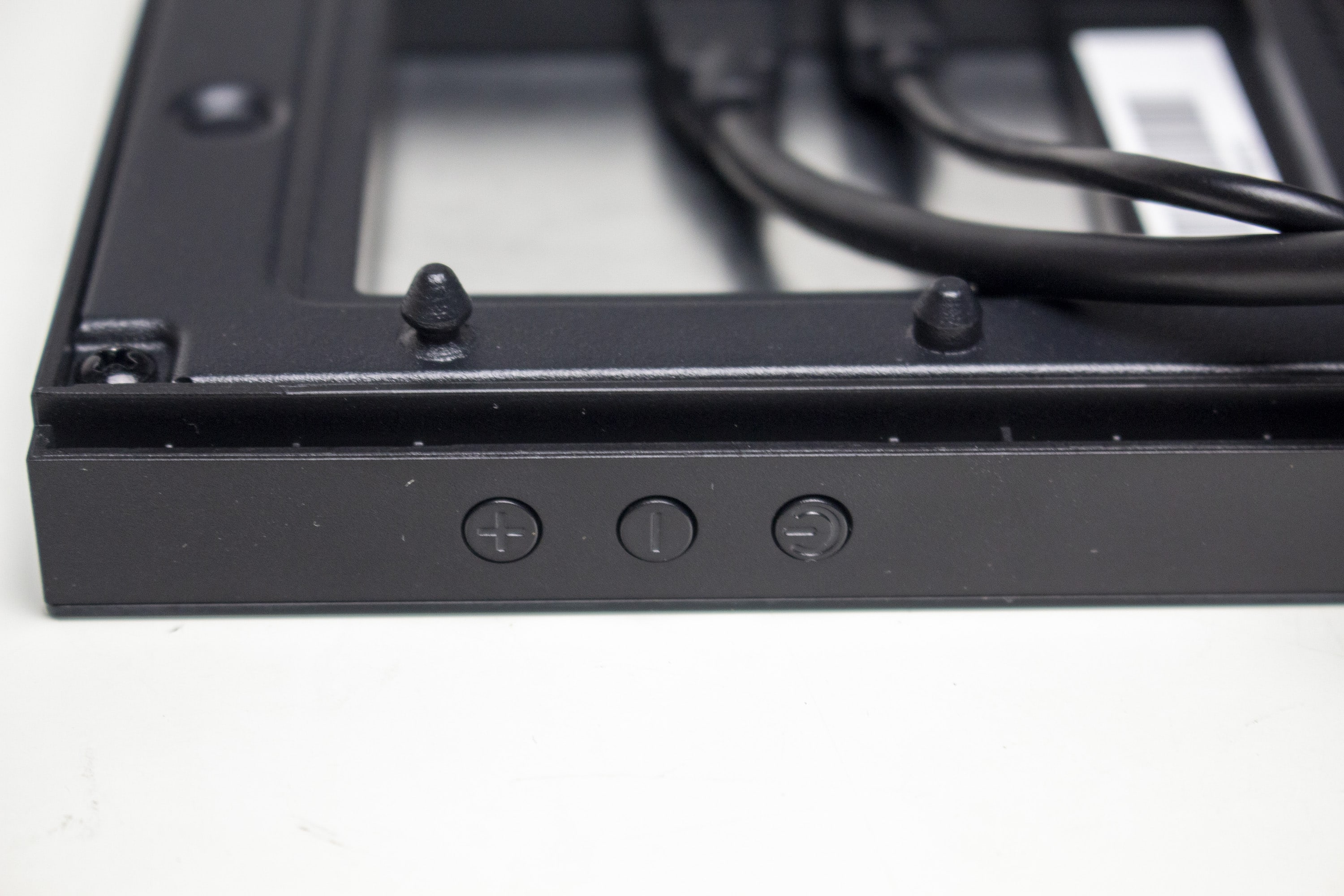 Das mitgelieferte TFT-LC-Display besitzt eine Diagonale von 8 Zoll, eine Auflösung von 1.280 x 800 Pixeln sowie ein Seitenverhältnis von 16:10. Der Anschluss erfolgt über ein Mini-HDMI auf HDMI-Kabel für das Bild und ein USB-C- auf USB-A-Kabel für die Stromversorgung. Beide Kabel sind lang genug, um diese hinter dem Mainboard-Tray entlang- und an der unteren Slotblende nach außen zu führen. Die Slotblende verfügt über spezielle Öffnungen für die Kabel. Das erspart unschöne Modifikationen. Zum Schutz vor Kratzern wurde vor dem Display ein Scheibe aus Temperglas platziert. Da Jonsbo zudem kleine Standfüße und das normale Mesh-Panel beilegt, könnte der Käufer des D31 das Display optional auch auf dem Tisch platzieren. Über seitliche Schalter kann man den Bildschirm zudem ein- und ausschalten und die Helligkeit steuern.