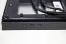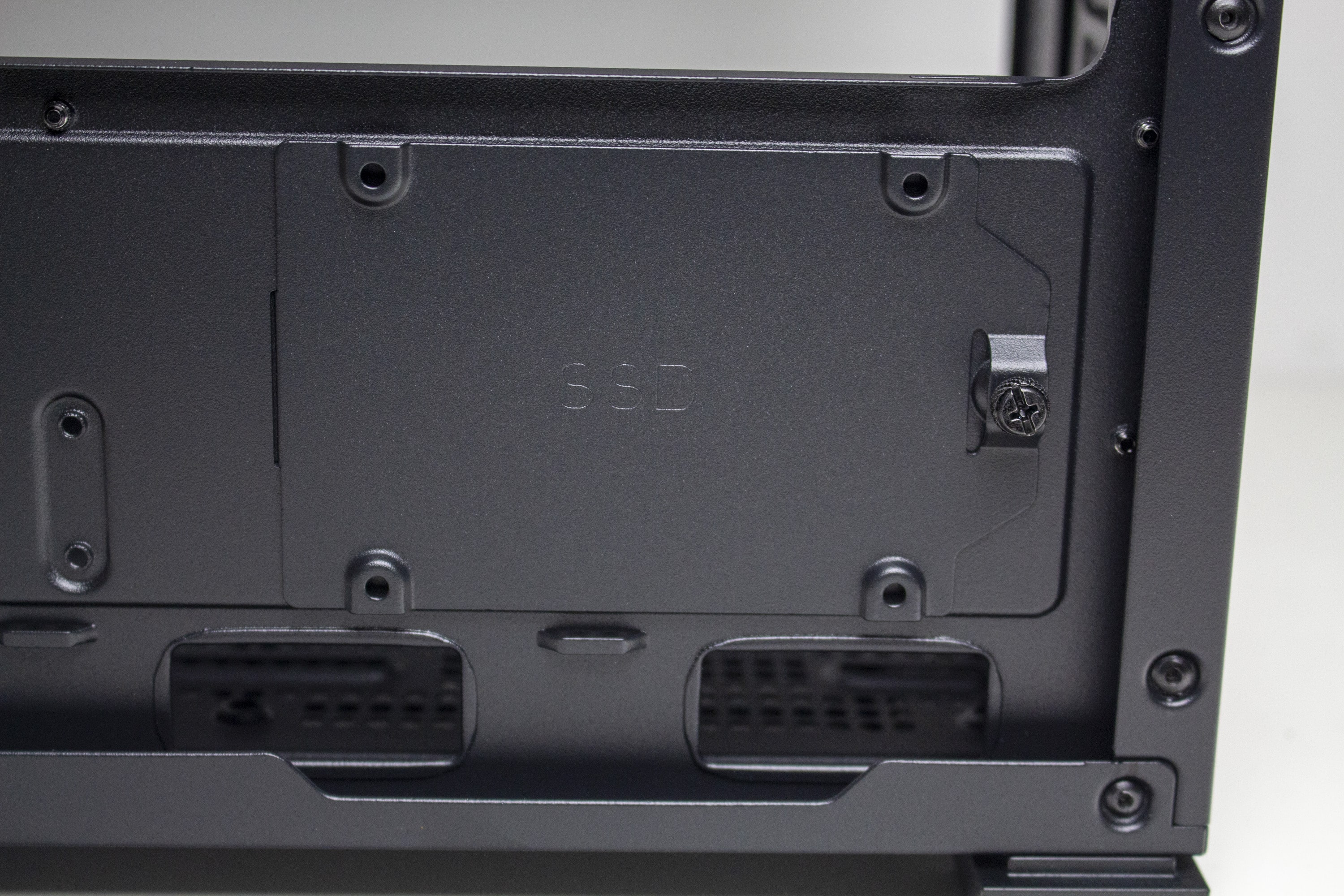Beim Erwerb von Datenträgern sollte man eher zurückhaltend sein, wenn man das D31 MESH Screen kaufen möchte. Es bietet maximal Platz für zwei 2,5″-SSDs und eine 3,5″-HDD. Die SSDs werden dabei auf passenden Stahlrahmen hinter dem Mainboard-Tray befestigt. Die Montage erfordert den Einsatz eines Schraubendrehers und eine Entkopplung gibt es nicht. Die größere Festplatte kann im Bodenbereich des Innenraums unterhalb des Netzteils und anstatt eines 120-mm-Lüfters positioniert werden. Zudem kann die Festplatte über Gummiringe, die Teil des Montagezubehörs sind, entkoppelt montiert werden.