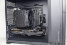 Der Einbau aller Komponenten gestaltete sich sehr einfach und war schnell erledigt. Nach Entfernung der Netzteilblende wurden das bestückte Mainboard sowie das Netzteil eingebaut. Auch mit verbautem CPU-Kühler konnte man alle wichtigen Steckerverbindungen auf dem Mainboard gut erreichen. Hilfreich waren außerdem die vorinstallierten Abstandshalter. Allerdings waren bei unserem Exemplar nur sieben der acht Abstandshalter vormontiert.