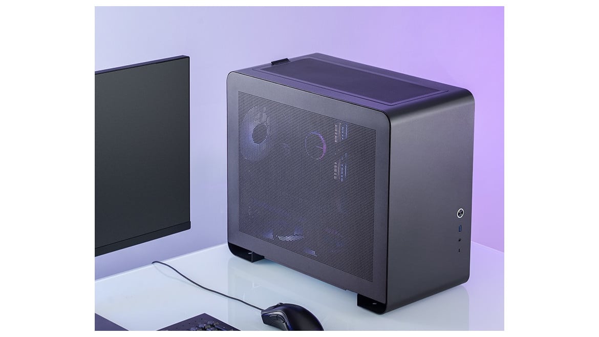 Aber auch für den Einbau einer Wasserkühlung bietet das Jonsbo U4 Mini Mesh einige Möglichkeiten. So lassen sich, allerdings in Abhängigkeit von der Grafikkarte, im Deckel bzw. Boden bis zu zwei 360-mm-Radiatoren gleichzeitig unterbringen. Dazu darf die GPU aber maximal 2 Slots dick sein und das Netzteil muss an der untersten Montageposition befestigt werden bzw. sollte generell möglichst kurz sein.