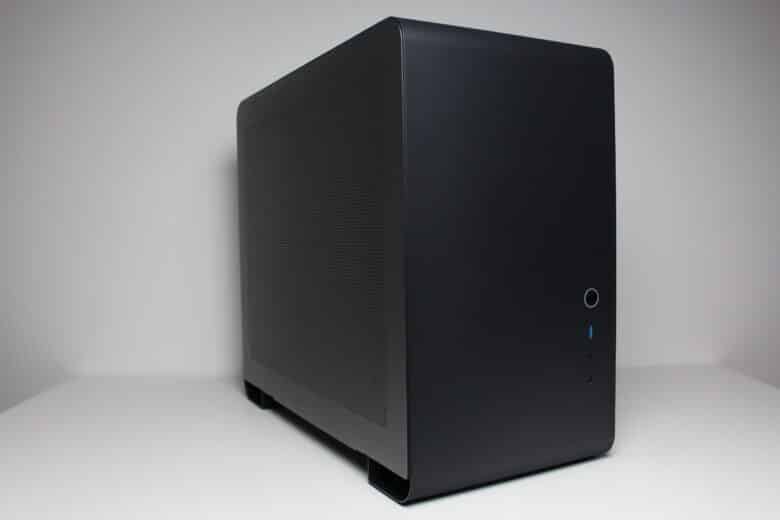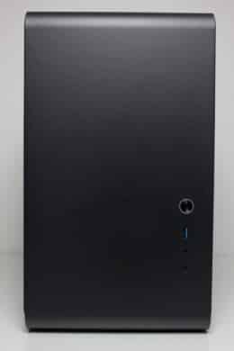 Direkt nach dem Auspacken fällt auf, dass das U4 Mini für einen Mini-Tower weder besonders klein noch besonders leicht ist. Gerade letzteres spricht aber für die solide Materialstärke. Optisch wirkt das Jonsbo U4 Mini sehr edel und zeitlos. Vor allem die Verwendung eines einzigen, mehrfach gebogenen Stahlblechs für Front, Deckel, Heck als auch die Standfüße ist eine interessante Gestaltung, die man so bisher noch nicht so häufig gesehen hat. Aber beginnen wir in der Front.