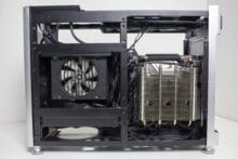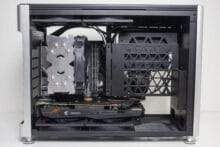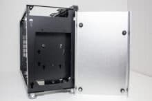 Dieser ganze Platz hat jedoch einen starken Einfluss auf die Größe des i100 Pro. Mit einem Gesamtvolumen von 25 Litern befindet sich dieses ITX-Gehäuse bereits im Bereich vieler µATX-Modelle. Sucht man also nach einem besonders kompakten Gehäuse, dann dürfte das i100 Pro nicht das Richtige sein. Hinzu kommt der Preis von € 179,90 * für dieses ITX-Gehäuse. Damit ist es nicht gerade ein Schnäppchen und lässt preislich auch einige gut ausgestattete ATX-Chassis hinter sich. Da Jonsplus das i100 Pro zudem ohne Lüfter ausliefert, muss deren Kaufpreis gedanklich schon auf der Rechnung hinzugefügt werden. Komplett ohne Ventilatoren sollte man dieses ITX-Gehäuse nämlich nicht betreiben.