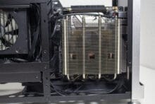 Das ATX-Layout erlaubt mit 166 Millimetern Höhe deutlich performantere Luftkühler. Das zeigt auch direkt der Temperatursprung zwischen dem Noctua NH-L12 S1 Ghost und dem Enermax ETS-F40-FS. Selbst ohne zusätzliche Lüfter ergibt sich schon eine Temperaturdifferenz von fast 20 Grad für die CPU und 10 Grad für die GPU. Mit einer 360er-AiO sind höchstwahrscheinlich nochmal bessere Temperaturwerte zu erwarten.