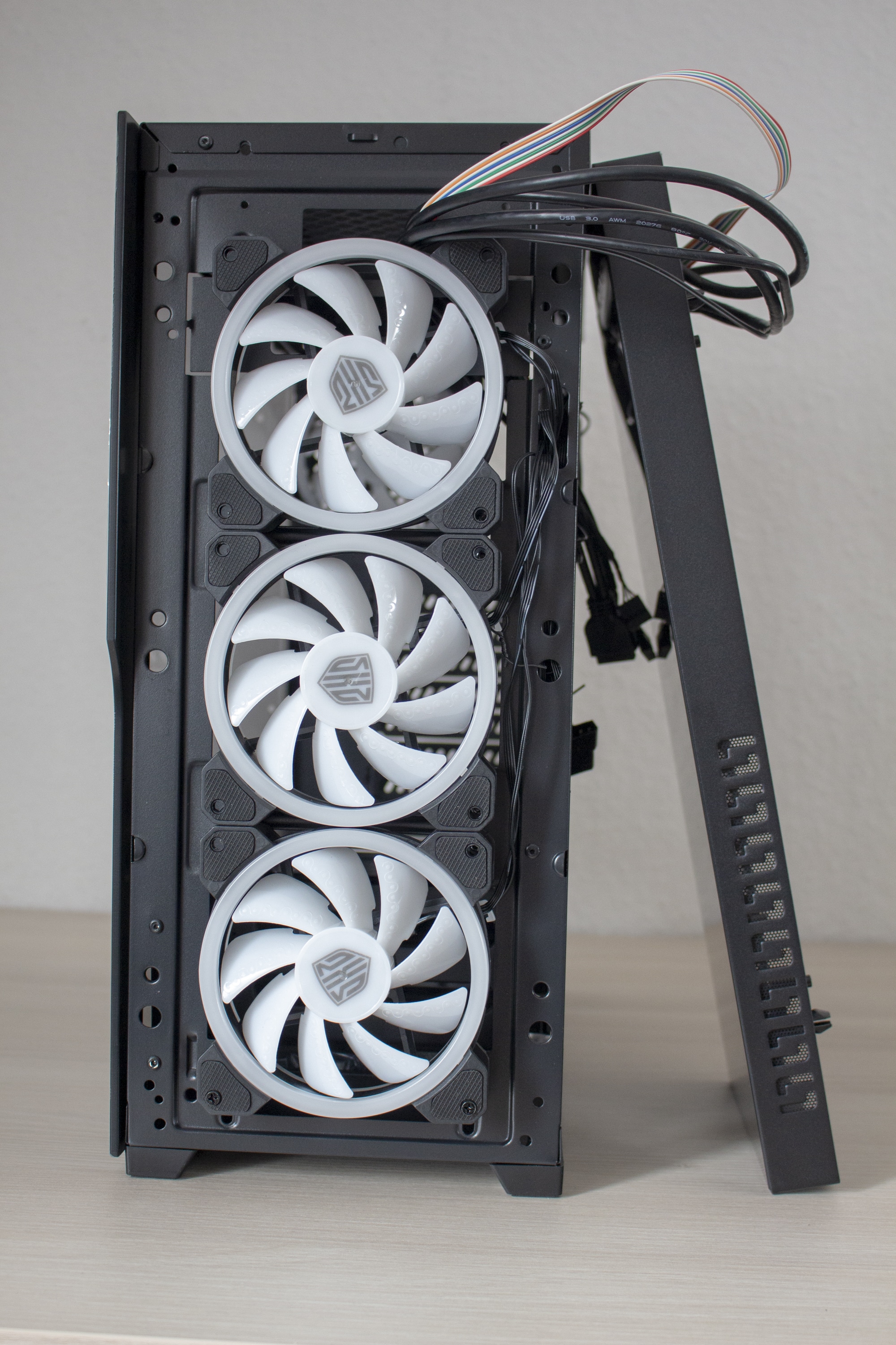 Insgesamt wirkt der Preis mit € 102,90 * einfach etwas zu hoch wenn man bedenkt, dass es bei der Konkurrenz (wie z. B. dem Sharkoon TG5 RGB) für das gleiche Geld einen besseren Airflow und vor allem digital adressierbare RGB-Lüfter gibt.