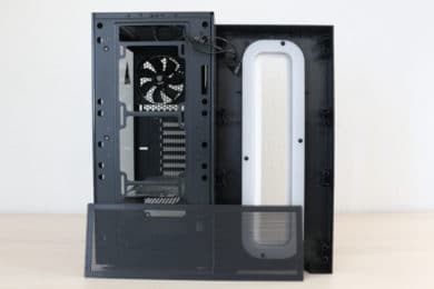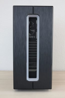 Bei der Auswahl von Komponenten muss sich Käufer hingegen fast keine Gedanken machen. Das Nimbus unterstützt CPU-Kühler bis 160 mm Höhe und Grafikkarten bis zu einer Länge von 325 mm. Zudem könnte man bei Bedarf auch einen 240-mm-Radiator im Deckel oder der Front platzieren. Ein Radiator in der Front schränkt allerdings die Grafikkartenlänge entsprechend ein. Lediglich beim Netzteil sind maximal 160 mm möglich wenn der Festplattenrahmen im unteren Bereich bleiben soll.