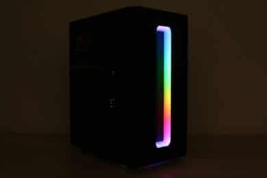 Im Vergleich zum Kolink Horizon oder Levante verzichtet der Hersteller beim Nimbus auf RGB-Lüfter und setzt auf ein ansprechendes RGB-Element mit insgesamt 37 RGB-LEDs in der Front. Durch einen milchig-weißen Rahmen aus Kunststoff wird das Licht gleichmäßig verteilt und wirkt nicht aggressiv. Die Ansteuerung erfolgt über eine im Frontelement verbaute kleine Platine. Neben dem Schalter im I/O-Panel können die LEDs auch digital über eine Software adressiert werden. Dazu verfügt die Platine über 3-Pin-Anschlüsse für eine Mainboard-Ansteuerung über den 5V-Anschluss. Abschließend geben wir euch noch ein paar Impressionen wie die Beleuchtung in Aktion aussieht.
