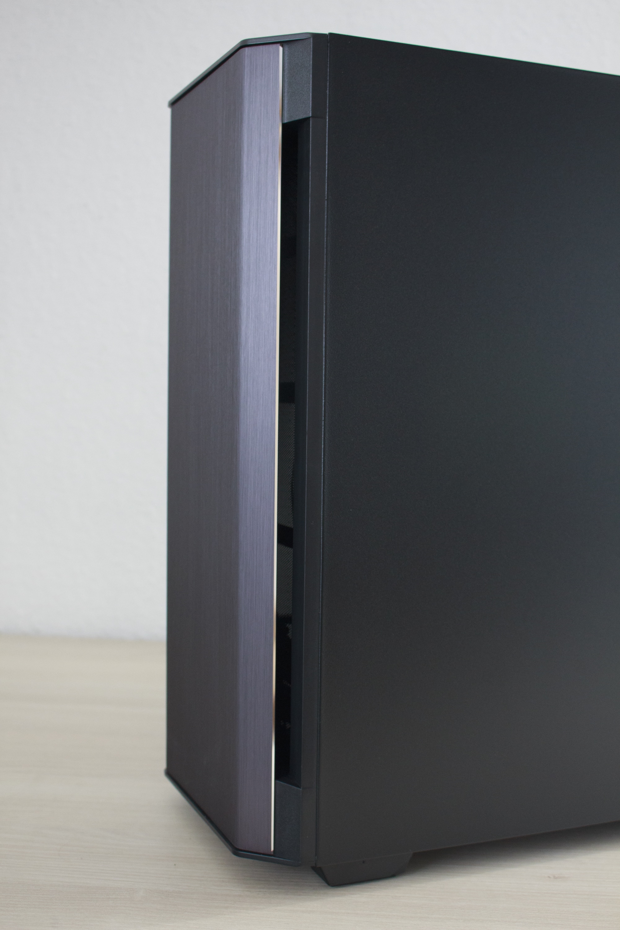 Beim Refine setzt Kolink äußerlich eher auf Understatement. Das Frontelement wird dominiert durch eine große glatte Fläche aus echtem gebürstetem Aluminium. Das ist nicht nur sehr schick sondern ist in dieser Preisklasse keine Selbstverständlichkeit. An den Ecken ist das Aluminium leicht gebogen und verläuft in Richtung der Seitenteile. Auf der linken und rechten Seite des Frontelements hat Kolink große Lüftungsschlitze angebracht. Zieht man die Front ab, offenbaren sich ein eingelassener magnetischer Staubfilter und Montageschienen für Lüfter im 120er- oder 140er-Format.