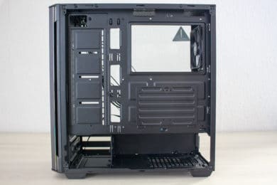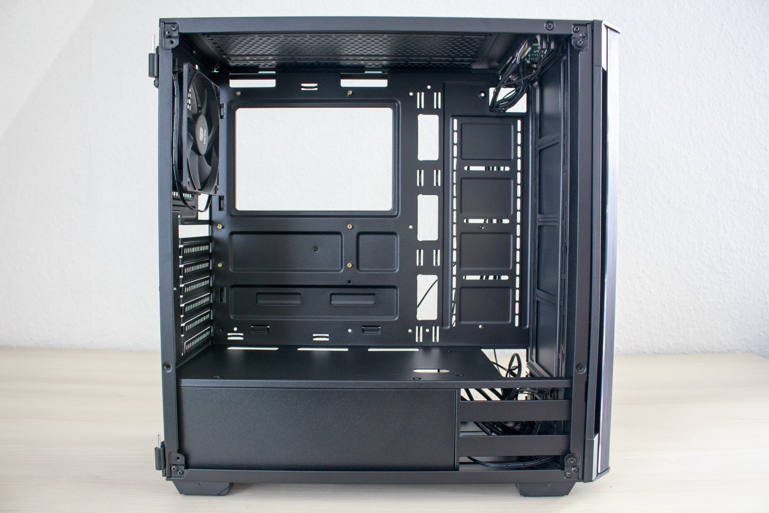 Beim Innenraum bleibt Kolink seinem bisherigen Design treu. Wer bereits das ein oder andere Kolink-Review auf diesem Blog gelesen hat, dem dürfte aufallen, dass der Innenraum bzw. der Korpus zum Beispiel identisch zu dem des Kolink Levante oder Horizon ist. Das führt zu einer modernen Unterteilung in zwei Kammern durch eine Netzteilabdeckung.