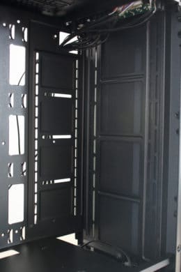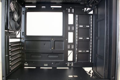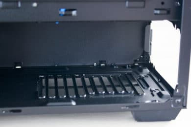 Auch die Verarbeitung im Innenraum weißt Schwächen auf. Die Lackierung ist ebenfalls sehr rau und das Material an der ein oder anderen Stelle sehr dünn. So lassen sich zum Beispiel das Mainboard-Tray oder die Netzteilabdeckung mit dem Finger sichtbar bewegen. Scharfe Kanten gibt es aber glücklicherweise im Refine nicht.