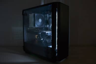 Insgesamt ist der Airflow im Kolink Refine ab Werk nicht ganz so gut. Ist der vorinstallierte Gehäuselüfter heruntergeregelt, erreicht der übertaktete Ryzen leicht bedenkliche 82 °C. Die Grafikkarte steht da mit 67 °C noch messbar besser dar. Der zusätzliche Test ohne Sidepanel zeigt, dass dem Refine zwei zusätzliche Frontlüfter sehr gut stehen würden um bessere Temperaturen zu erreichen.