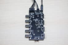 Das mitgelieferte Zubehör befindet sich in einem Beutel aus Kunststoff, welcher auf der Rückseite des Mainboard-Trays platziert wurde. Dieser beinhaltet fünf Kabelbinder, alle notwendigen Montageschrauben, einen Mainboard-Speaker, eine Kurzanleitung sowie drei Abstandshalter für das Mainboard, falls dieses nicht über die volle ATX-Breite geht. Weiterhin gehören zum Lieferumfang eine Steuerplatine für die Lüfter und drei Staubfilter für Deckel, Netzteil und Seitenwand. Die Platine für die Lüfter- und RGB-Steuerung wurde bereits verkabelt und verfügt über einen Klebestreifen. Dieser ist ab Werk aber nicht benutzt sodass der Käufer selbst entscheiden kann, wo die Platine platziert werden soll.
