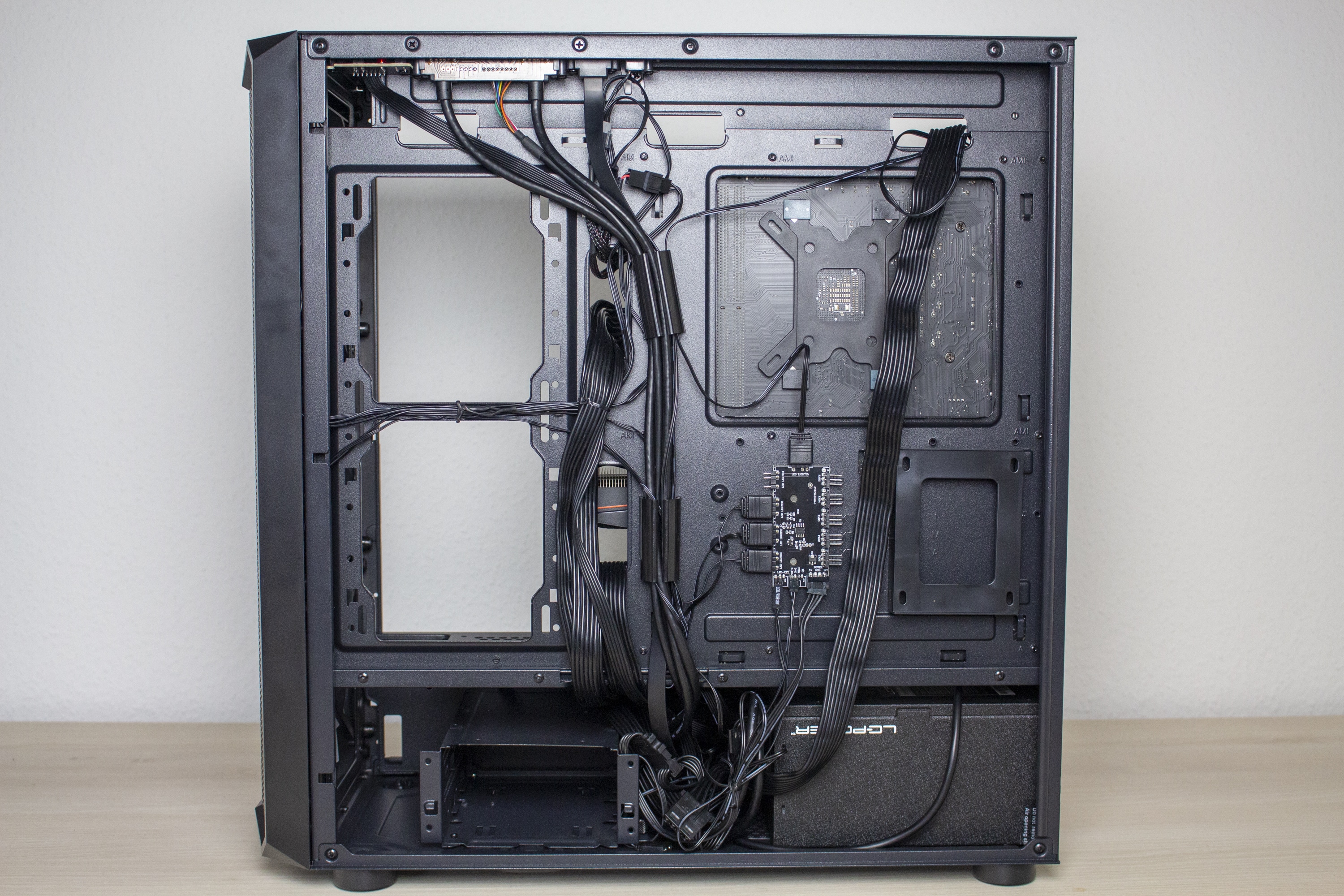 Keine Herausforderung war hingegen die Verkabelung des Testsystems. Hinter dem Mainboard-Tray gibt es genug Platz und die vorinstallierten Kabelklammern sind besonders für kleine Kabel sehr nützlich. Das fertige System wirkt optisch ansprechend und ordentlich. Das rechte Seitenteil konnte problemlos geschlossen werden.