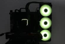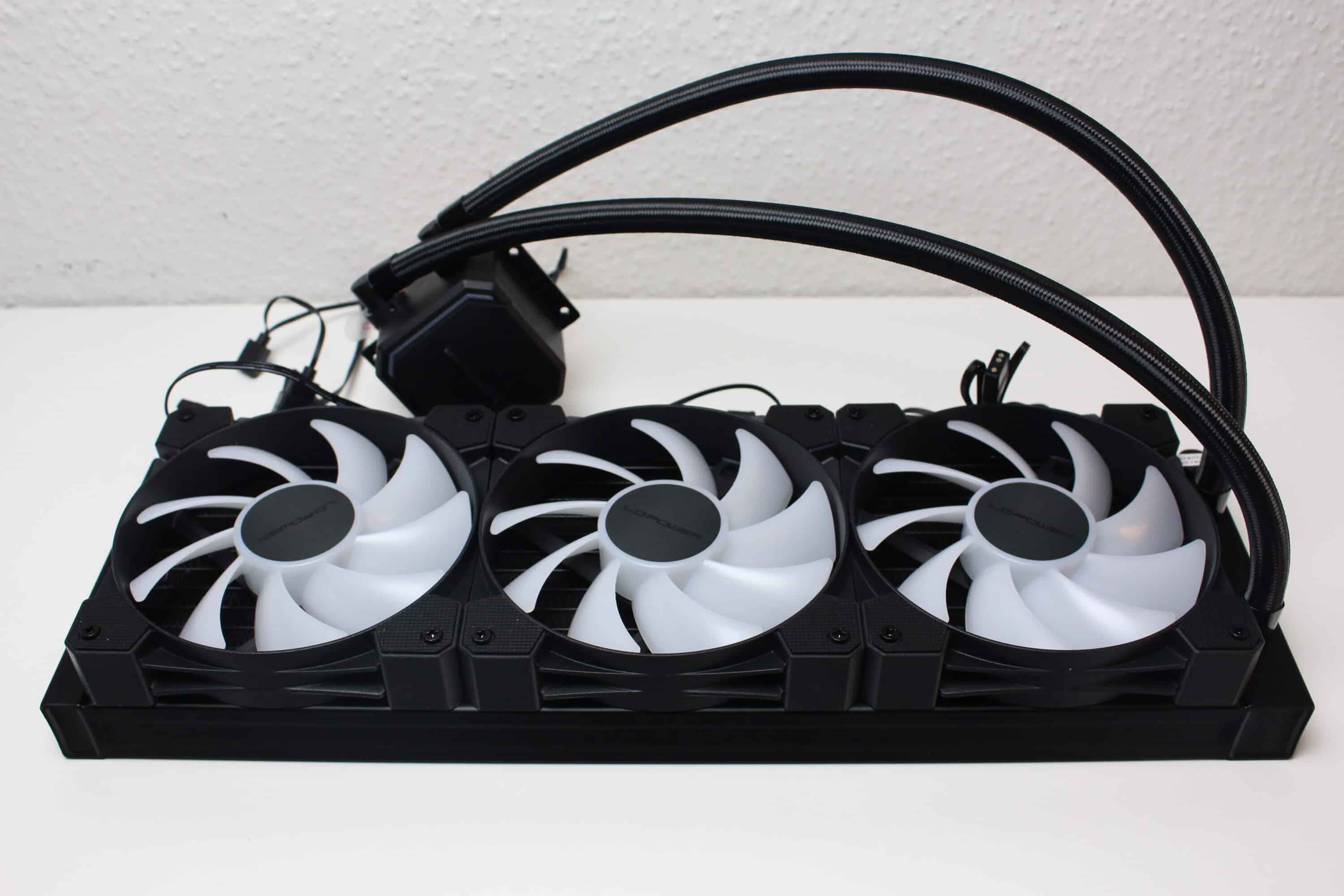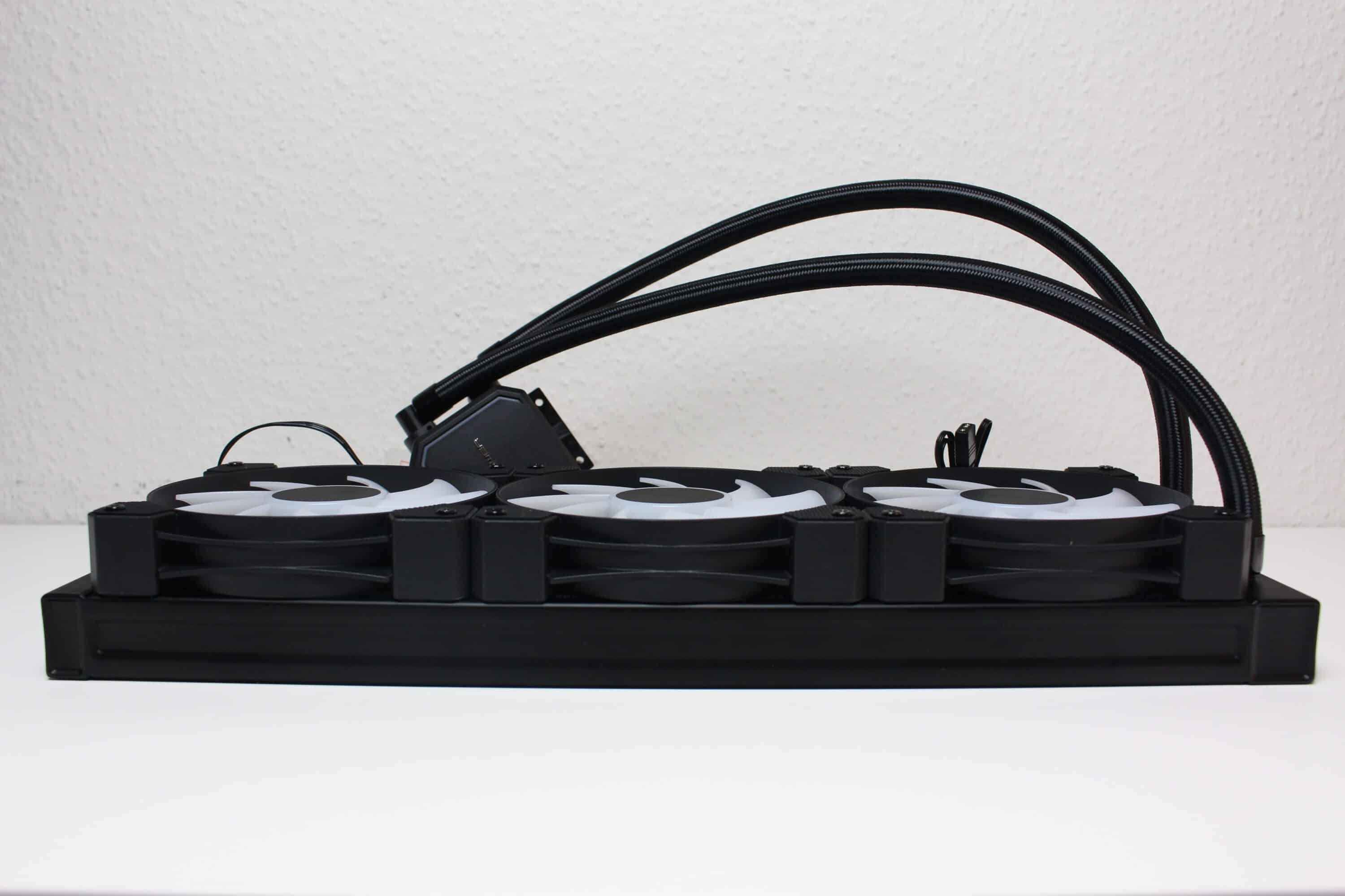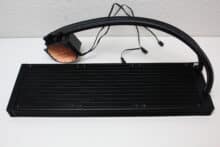 Als negativ sehen wir hingegen die Lautstärke der Lüfter bei höheren Drehzahlen. Aufgrund des weiten Drehzahlbereichs und der generell guten Kühlleistung fällt dieser Aspekt jedoch nicht so stark ins Gewicht. Störender waren da eher die stellenweise verbogenen Lamellen am Radiator sowie die doch etwas knappe Montageanleitung, die, zumindest für Neulinge, doch etwas uneindeutig sein könnte. Zuletzt möchten wir auch die bei höheren Drehzahlen surrende und damit hörbare Pumpe nicht unerwähnt lassen.