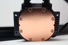 Unabhängig vom Sockel wird der Pumpenblock nun an den Abstandshaltern verschraubt. Dazu kommen vier federgelagerte Schrauben zum Einsatz. Die Montage der LC-Power LC-CC-360-B-ARGB – JetFlow war einfach und sollte für erfahrene PC-Bastler schnell zu erledigen sein. Für Neulinge könnte die eher knappe Anleitung ruhig noch etwas eindeutiger sein. Löblich ist die sehr hohe Sockelkompatibilität, die auch die Montage auf besonders alten AMD- und Intel-Sockeln erlaubt.