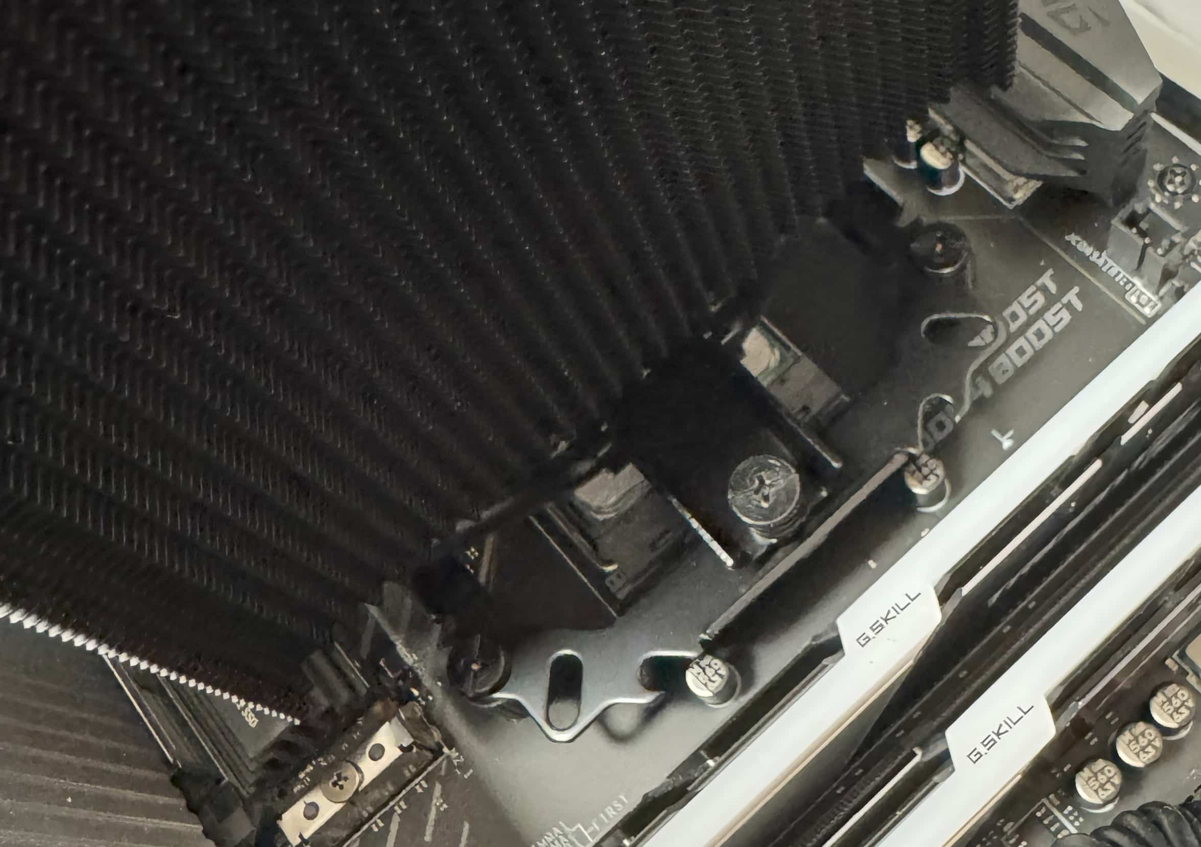 Die Halteklammern ermöglichen eine Einstellung der Höhe, falls andere Bauteile wie z.B. RAM-Module den Einbau behindern würden. Dies sollte durch den schmalen Aufbau des Kühlers aber sowieso nicht der Fall sein.