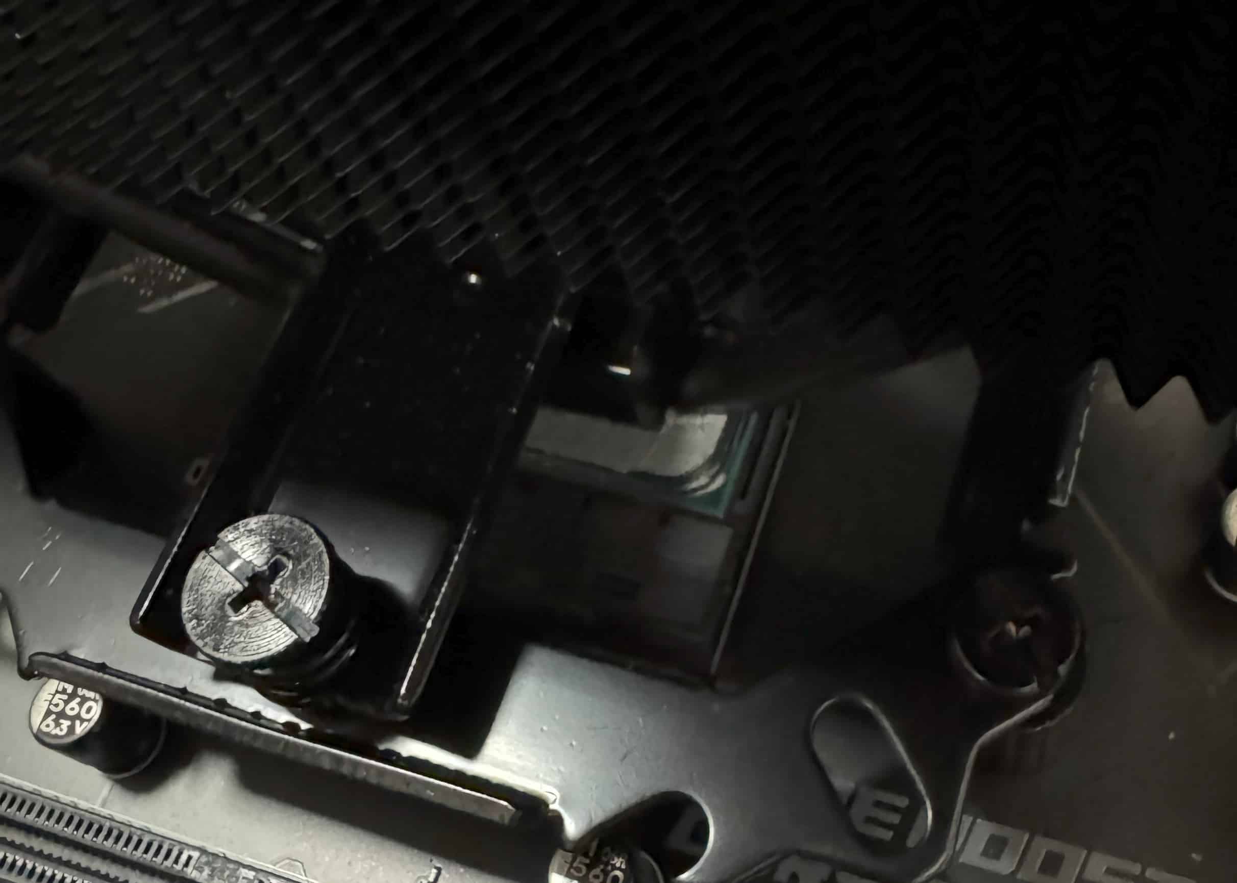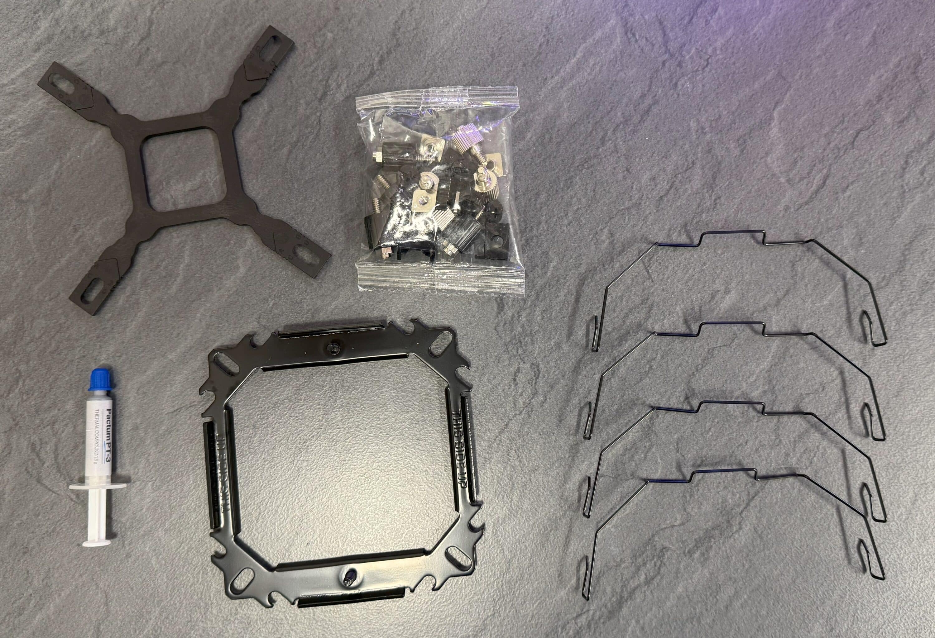 Der Einbau beginnt als erstes mit der Wärmeleitpaste auf den Heatspreader der CPU. Anschließend muss die originale Backplane des Mainboards mit den passenden Abstandshalterschrauben fixiert werden. Sind alle vier Schrauben handfest angezogen kann der Halterahmen aufgesetzt und mit vier weiteren schwarzen Schrauben fest damit verbunden werden.