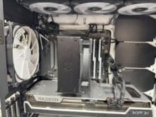 Dafür bekommt man einen hervorragend verarbeiteten Kühler, mit laufruhigem Lüfter, der sich durch sein schwarzes Finish optisch fantastisch ins System integriert. Die Kühlleistung ist ordentlich, doch die TDP-Angabe von 220 Watt ist überaus ambitioniert gewählt und wahrscheinlich nur unter Düsenjet-artigem Lüftergeräusch halbwegs erreichbar.