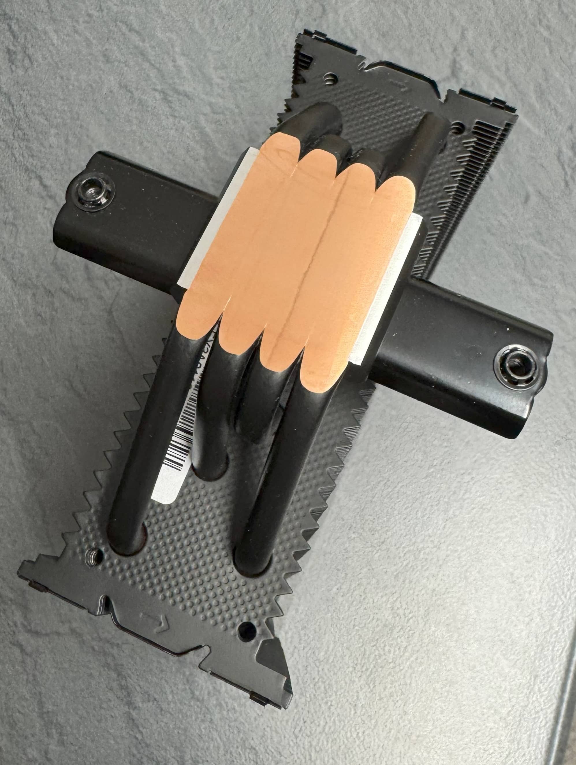 Der Kühler kommt komplett in schwarz lackiert. Die Verarbeitung ist anstandslos und auf den vier Direct-Touch-Heatpipes ist eine kleine Schutzfolie angebracht.