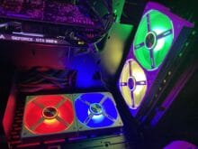 Für den Praxistest haben wir die Lüfter in das Big-Tower Gehäuse Lian Li ODYSSEY X montiert. Die Montage verlief dabei deckungsgleich zu den SL140. Die zwei Verbindungskabel der Lüfter werden in den Controller gesteckt, der wiederum per USB mit dem Mainboard und per SATA mit dem Netzteil verbunden wird. Der Controller bietet vier Anschlüsse, womit insgesamt 4×4 Lüfter an einem Controller gesteuert werden können.