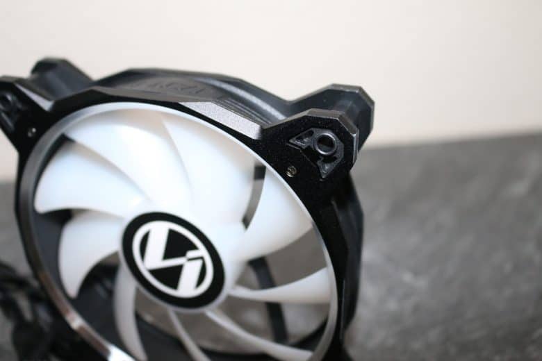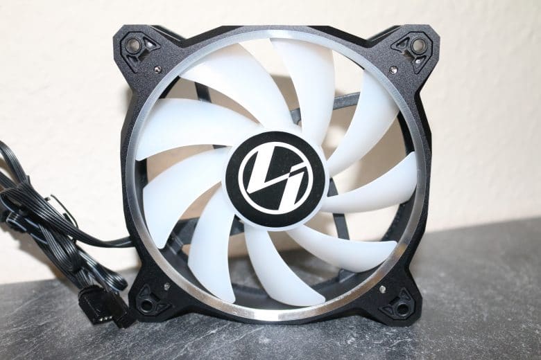 Die Lüfter im 120-mm-Format arbeiten in einem Drehzahlbereich von 900 bis 1.500 U/Min und man sollte meinen, dass die Lautstärke bei dieser minimalen Drehzahl recht hoch ist. Lian Li setzt dem jedoch hydraulische Flüssigkeitslager sowie gummierte Ecken zur Entkopplung und Geräuschreduktion entgegen. Letztere müssen allerdings erst von Hand installieren werden, was ein Schritt ist, den Lian Li auch direkt selbst hätte übernehmen können. Wir haben bei einem der drei Lüfter leider ein sehr störendes „Rattern“ festgestellt, was vor allem bei Systemen, die nah am Nutzer auf dem Schreibtisch stehen, ziemlich störend sein kann. Da dies nur bei einem von dreien der Fall ist, gehen wir davon aus, dass dies nicht die Regel ist. Außerdem kann man sich in einem solchen Fall auch an die RMA-Abteilung des Händlers wenden. Ansonsten sind die Lüfter bei den angegebenen Drehzahlen recht leise, allerdings auch nicht das Maß aller Dinge.