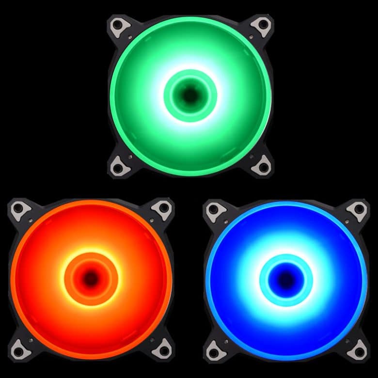 Die RGB-LEDs der BR Lite Lüfter befinden sich nicht im Rahmen, sondern innerhalb der Narbe. Gleich zwölf LEDs wurden an dieser Stelle untergebracht, weshalb die Beleuchtung besonders intensiv und gleichmäßig ist. Im Vergleich zu den normalen Lian Li BR Lüftern sind die Beleuchtungsmöglichkeiten bei den BR Lite jedoch ein wenig abgespeckt. Sie leuchten stets in einer Farbe und ermöglichen Farbwechsel, einen pulsierenden Effekt und natürlich die statische Beleuchtung. Wie in der Einleitung bereits erwähnt, lassen sie sich mit den gängigsten Mainboards verbinden und über dessen Software steuern. Sollte dies nicht möglich oder gewünscht sein, ist eine manuelle Steuerung natürlich ebenfalls möglich. Sehr praktisch wie wir finden.