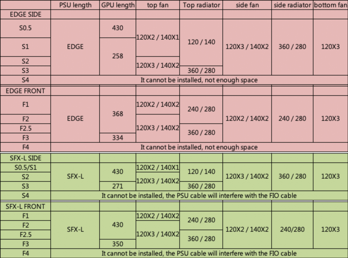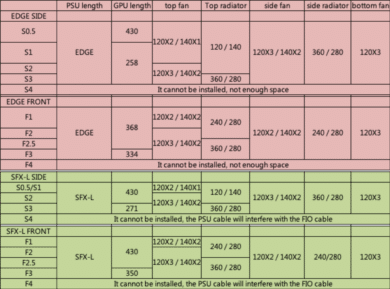 | Max. Grafikkartenlänge: | 258 mm bis 415 mm (abhängig von Netzteillänge) |