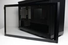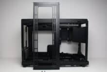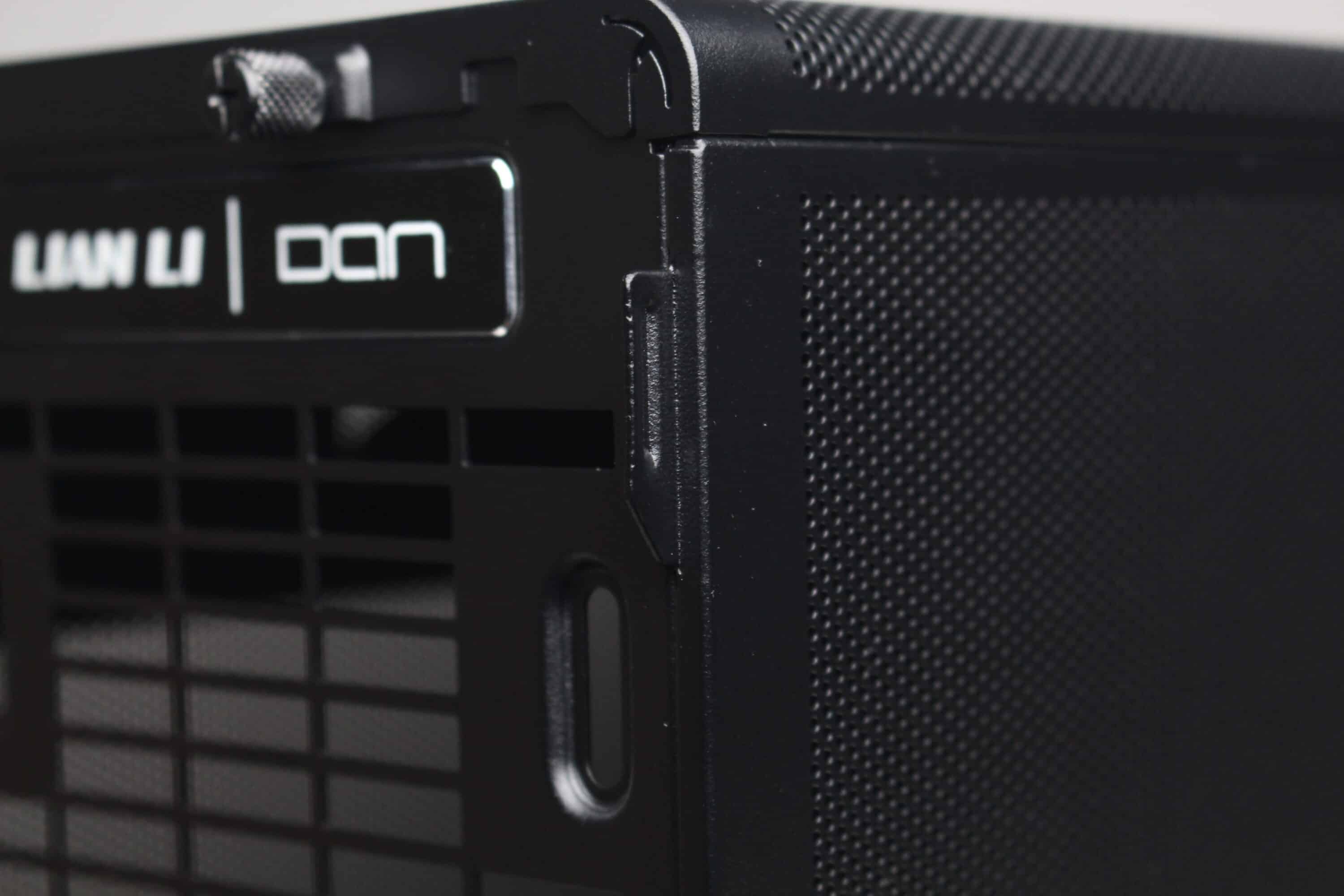 Die Verarbeitung des Lian Li & DAN A3-mATX ist gut, aber nicht auf dem Niveau, welches wir von anderen Lian Li bzw. DAN Cases Gehäusen gewohnt sind. Die Korpus-Stabilität ist gut und auch die Lackierung ist größtenteils sauber durchgeführt worden. Bei unserem Testexemplar konnten wir jedoch sichtbare Kratzer auf dem Mainboard-Tray erkennen und durch die Seitenteile aus Mesh wirkt das A3-mATX im vollmontierten Zustand etwas blechern bzw. klapprig.