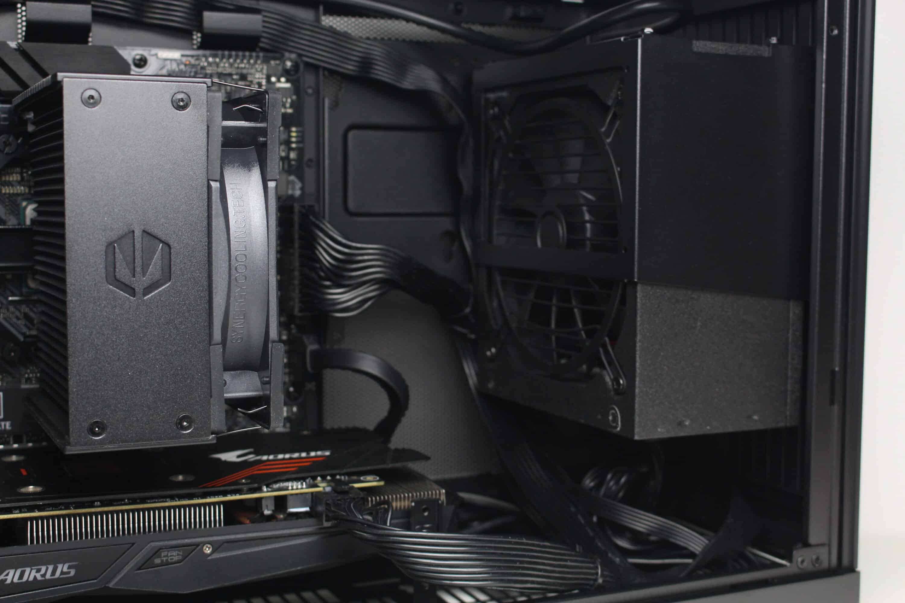 Nun kommen wir zum Systemeinbau beim Lian Li & DAN A3-mATX Test. Als Hardware verwenden wir einen AMD Ryzen 5 1400* auf einem ASUS TUF Gaming B550M-Plus* mit 16GB Crucial Ballistix Sport LT grau DDR4-2666*. Der Ryzen wird von einem ENDORFY Fera 5 Black* gekühlt und ist auf 3,8 GHz (1,175 V) übertaktet. Für die Bildausgabe ist eine Gigabyte AORUS GTX 1060 6GB zuständig. Die Stromversorgung erledigt das vollmodulare LC-Power LC550 V2.31 Platinum*.
