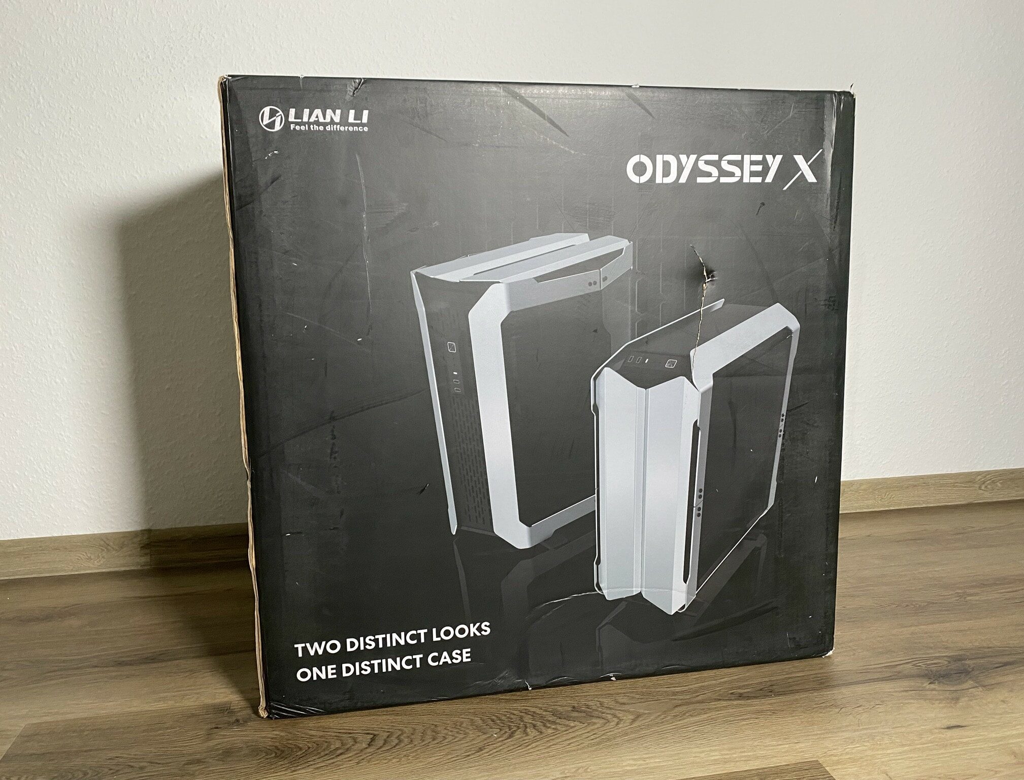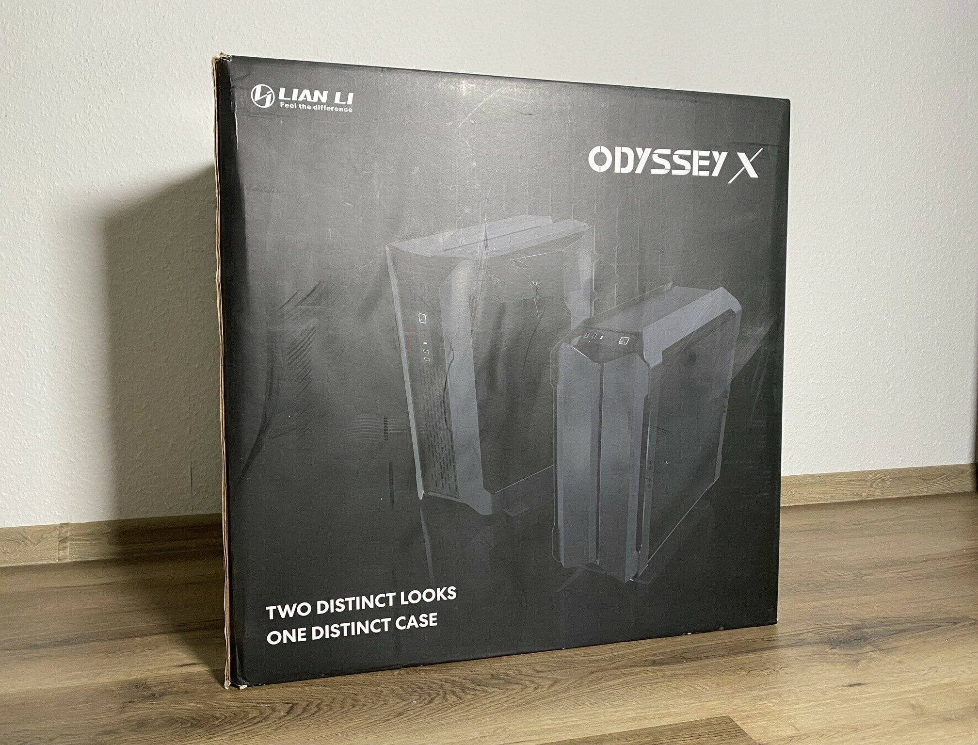 Wenn ein Big-Tower geliefert wird, tun einem manchmal die Paketboten leid – einen so massiven Karton anzuheben, stellt schon die erste Herausforderung vor dem eigentlichen Beginn da. Mit einem Gesamtgewicht von etwa 20 kg inklusive Verpackung kommt das ODYSSEY X zu einem nach Hause geliefert. Dabei macht jedoch die optische Verpackung einen ersten sehr guten Eindruck. Als ein kleiner Teaser sind von außen die beiden unterschiedlichen Looks abgebildet – Und damit sind nicht die unterschiedlich erhältlichen Farben gemeint.