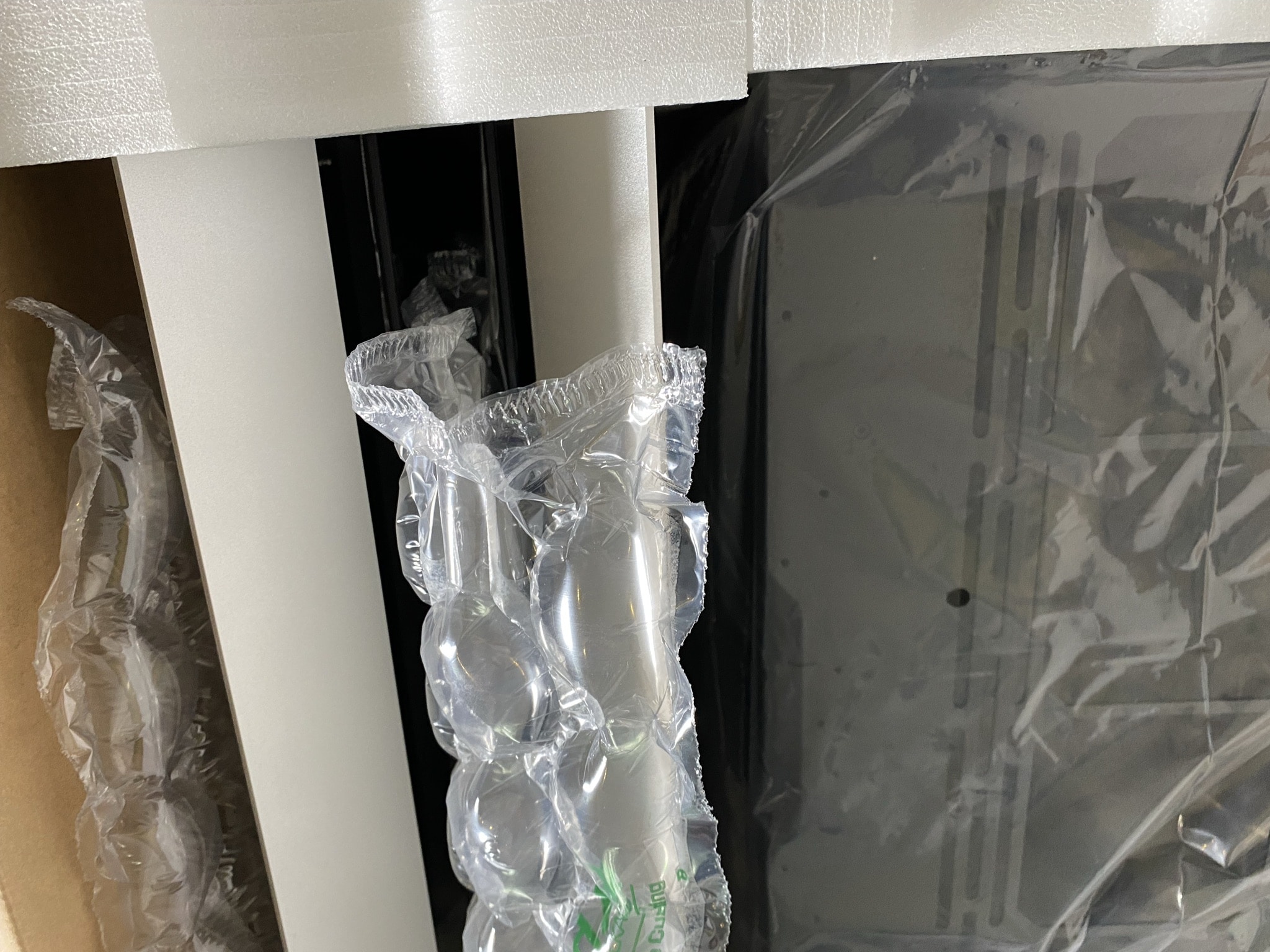 Innerhalb der Verpackung ist alles ordentlich und sorgfältig verpackt. Oben auf dem eigentlichen Inhalt liegt eine kleine weiße Schachtel mit den Verpackungsbeilagen. Unterhalb dieser befinden sich die einzelnen Elemente: Das Gehäuse selbst, die Scheiben und die anbaubaren Platten voneinander getrennt in Schaumstoff. Hier kann somit wirklich nichts beim Transport beschädigt werden.