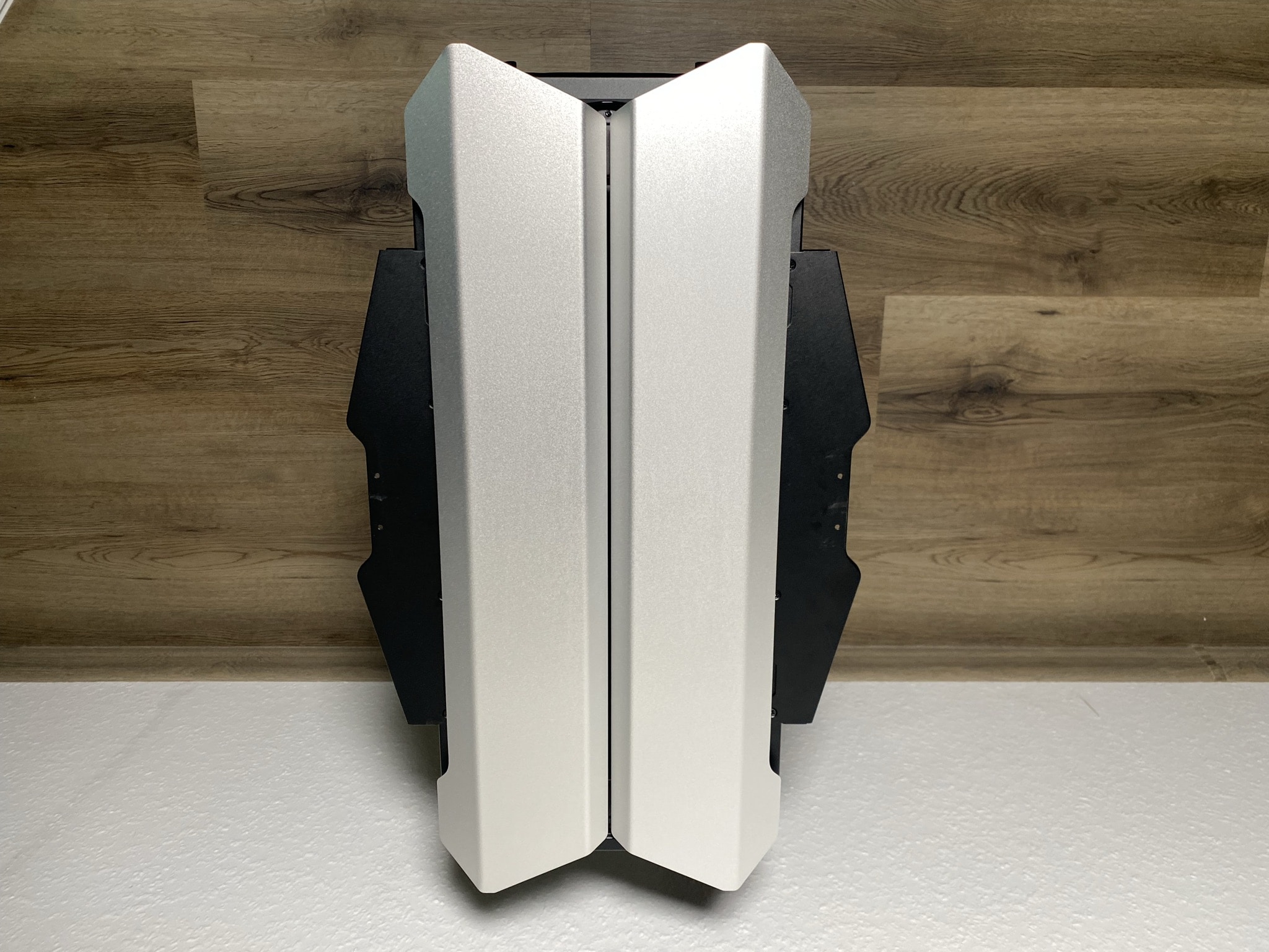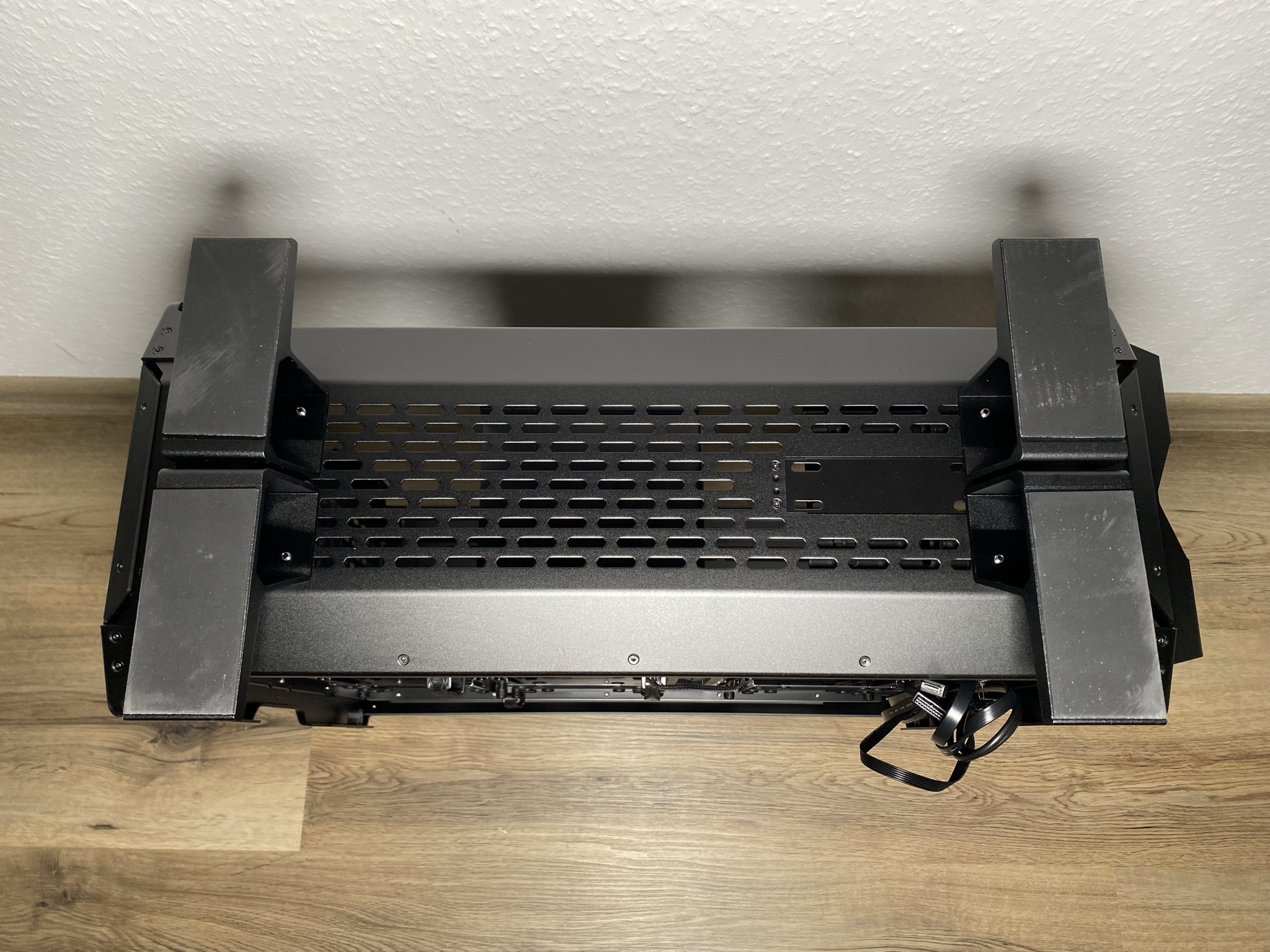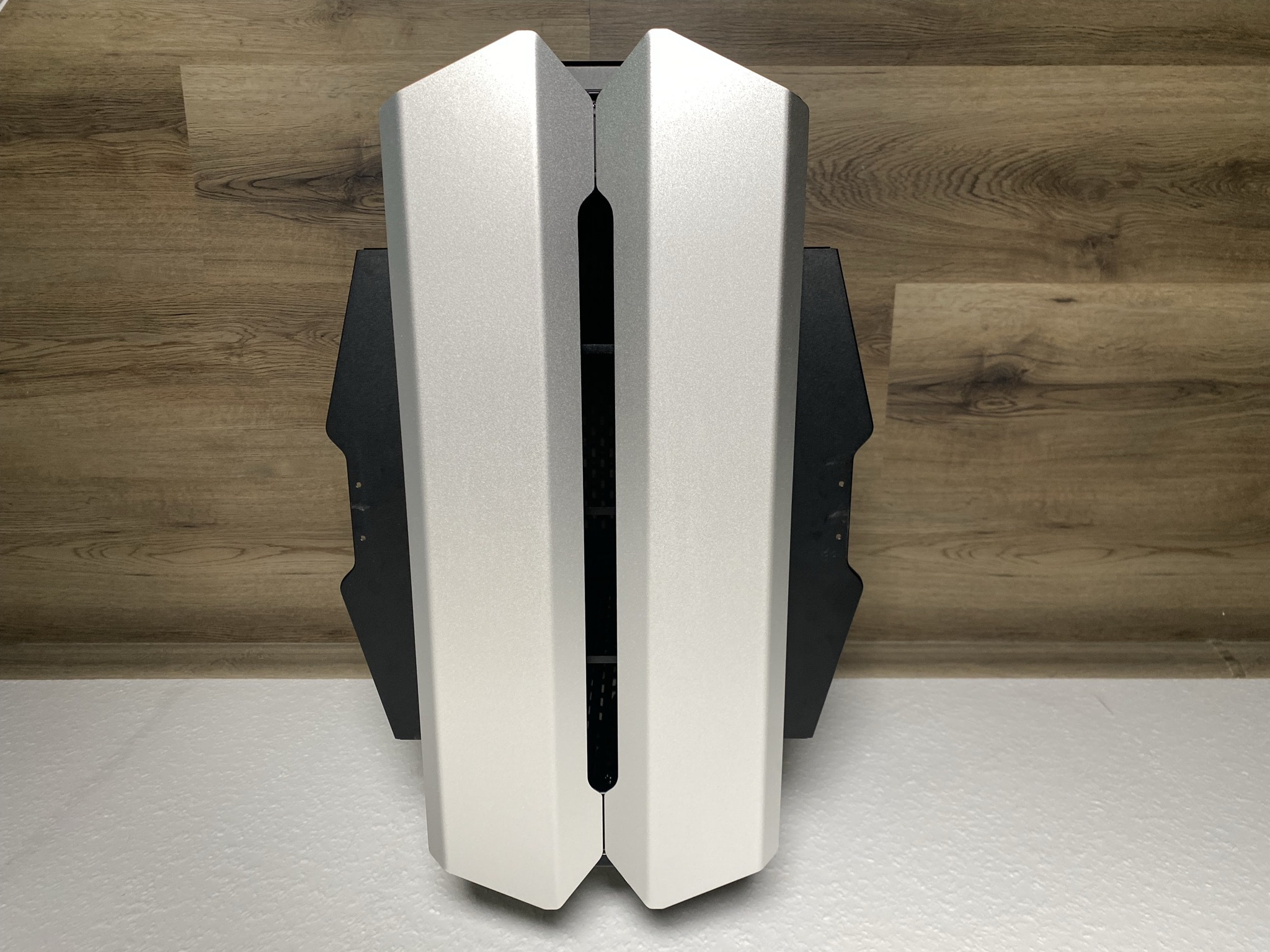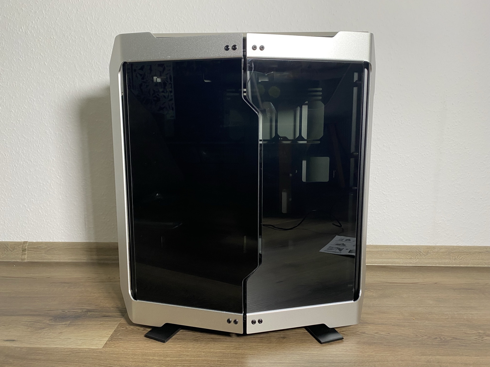 Wie genau die Details einen Unterschied machen können, kann man außerordentlich schön in diesem Kapitel sehen. Starten wir jedoch bei den Grundlagen – der Basis des ODYSSEY X. Hier beginnt die gesamte Magie des Gehäuses. Die Basis ist nicht ohne Grund unfertig montiert geliefert worden, sondern so weit es möglich war offen als eine Art Baukasten. Im ersten Schritt sollte man sich für eine der möglichen drei Varianten mit zwei wesentlich unterschiedlichen Looks entschieden. Den einfachen normalen Look, eine rotierte Variante des normalen Looks und zuletzt ein die von uns getestete Performance-Variante. Je nach Entscheidung kann man die Basis aus einem anderen Winkel betrachten.