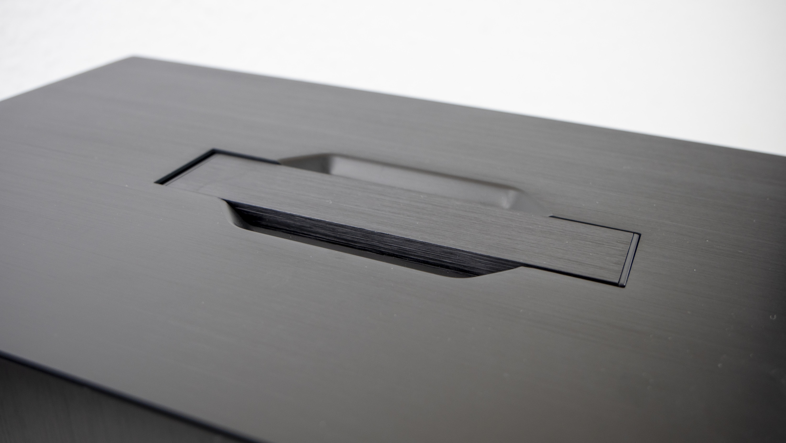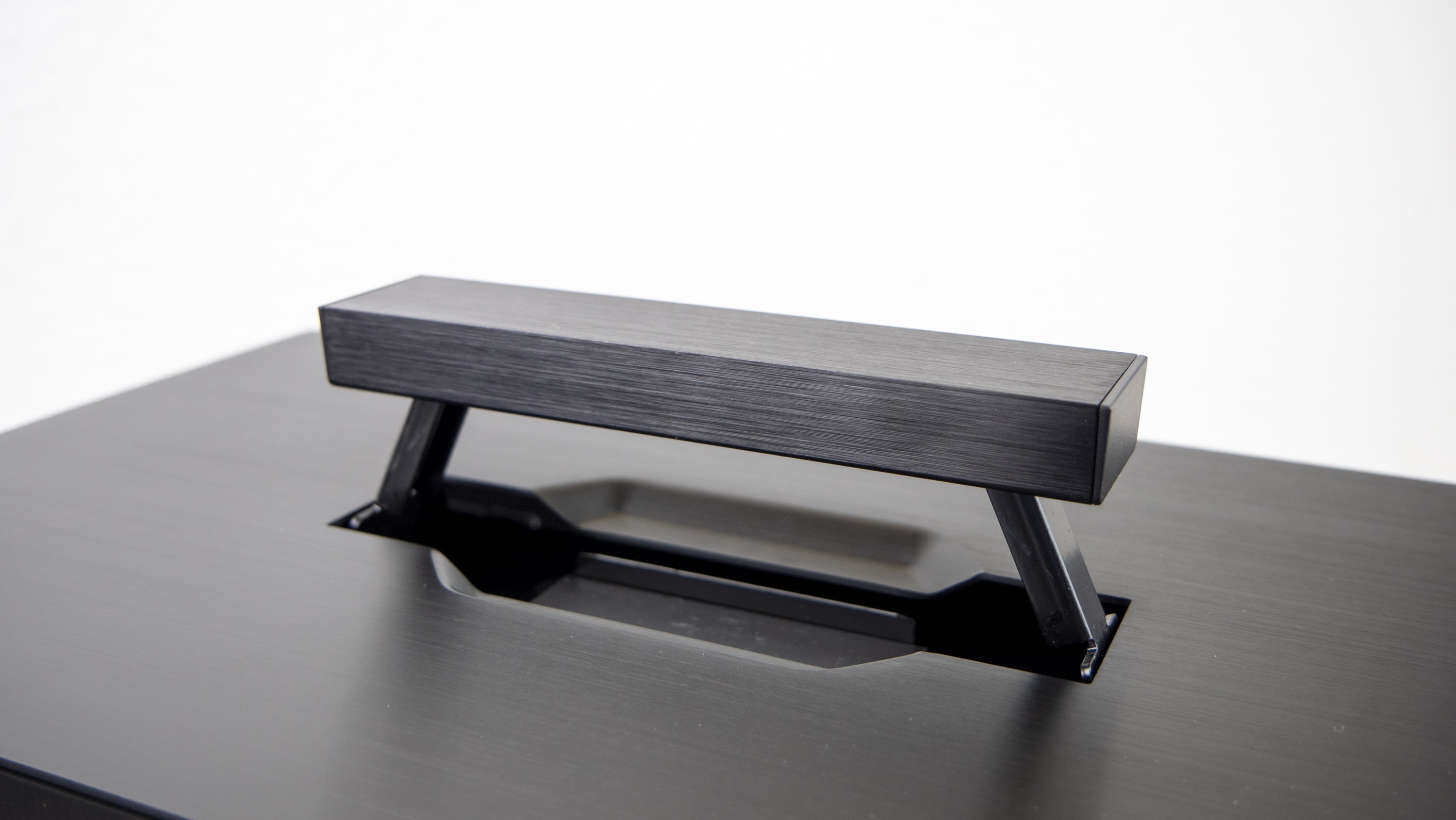 Ein tolles Feature ist wohl der praktische Tragegriff des Gehäuses. Dieser stört optisch zu keiner Zeit. Schließlich kann man ihn nach Bedarf aus- und anschließend wieder einklappen.