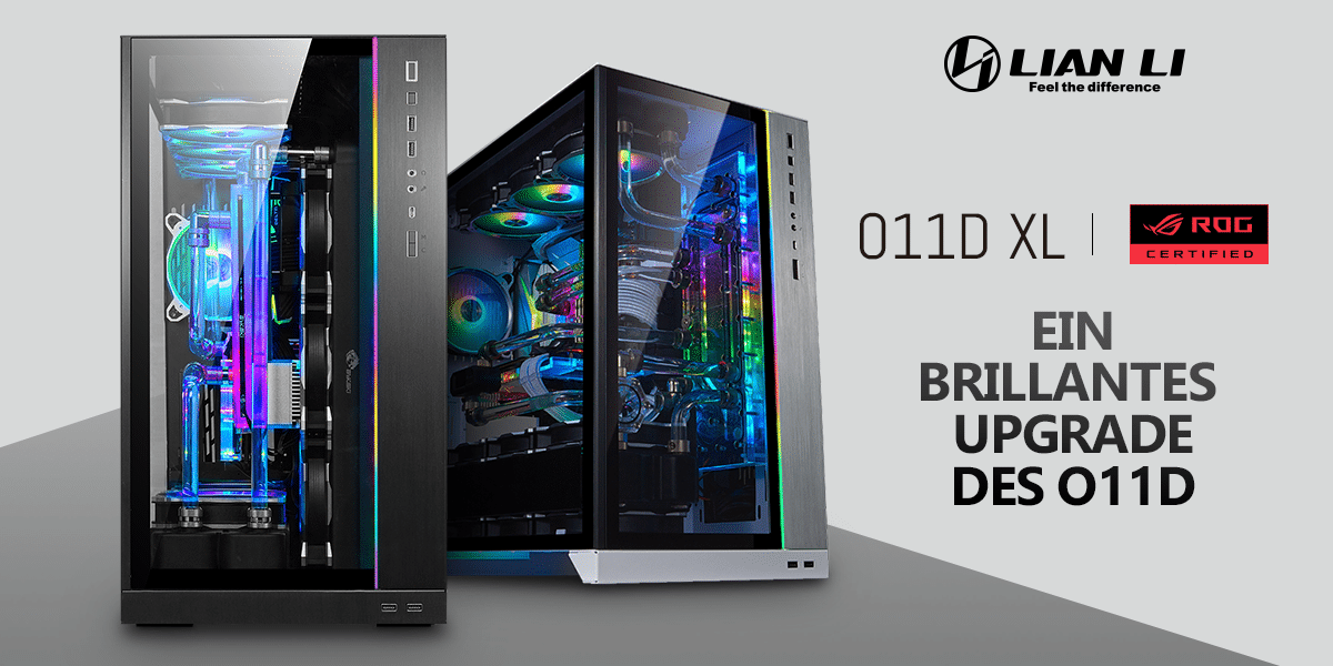 Das Lian Li O11Dynamic XL Dual-Chamber-Midi-Tower-Gehäuse ist der große Bruder des O11D Dynamics und ist wieder in Zusammenarbeit mit Übertaktungslegende der8auer entstanden. Auch wenn der Vergleich ein wenig hinkt, denn es ist eigentlich eine konsequente Weiterentwicklung. Auffallend ist vor allem das wesentlich größere Platzangebot und die in die Front integrierte RGB-Beleuchtung.